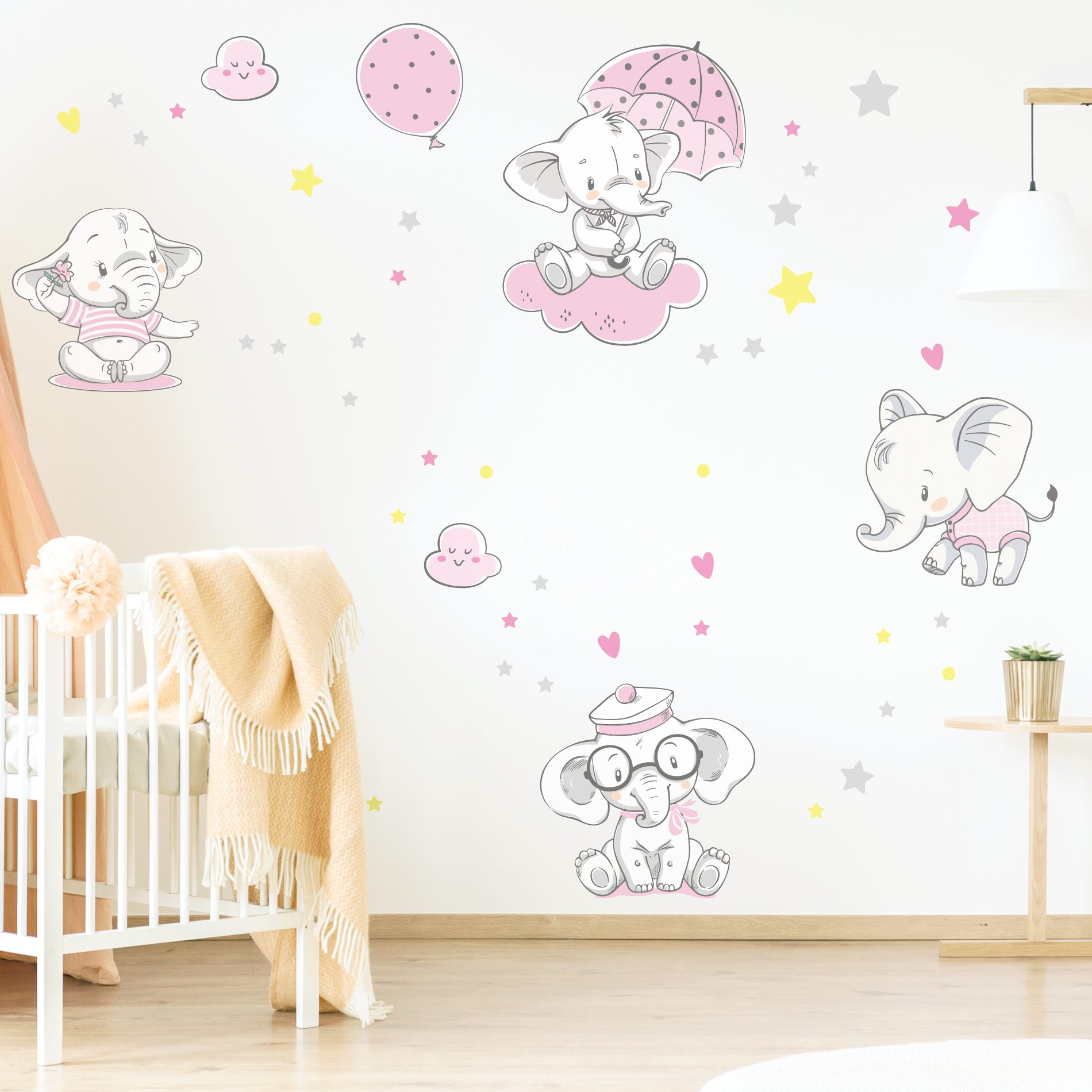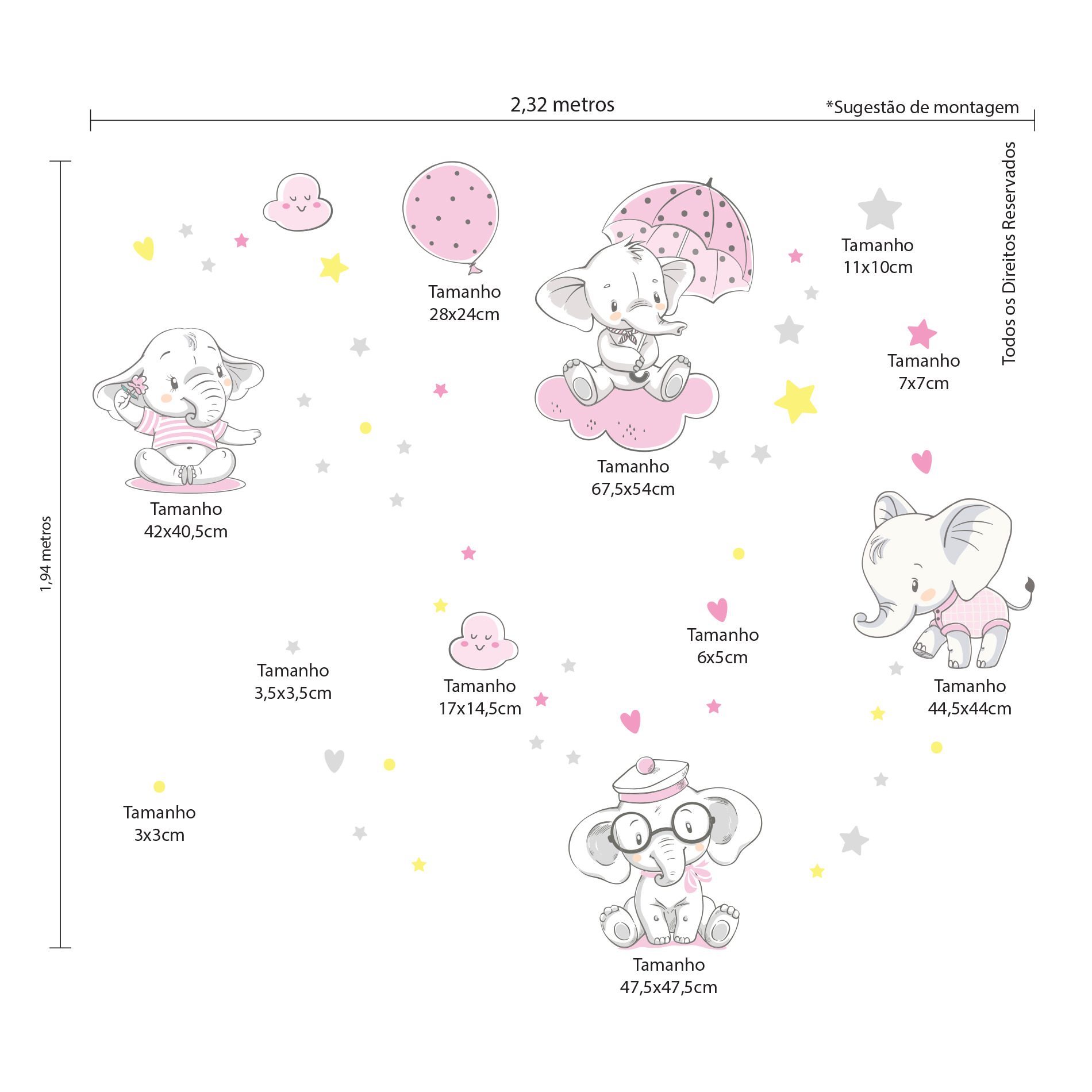Adesivo de Parede Elefante Baby Rosa 4,5m²