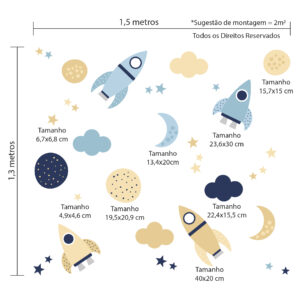 Características e Dimensões do Adesivo de Parede Espaço e Foguetes