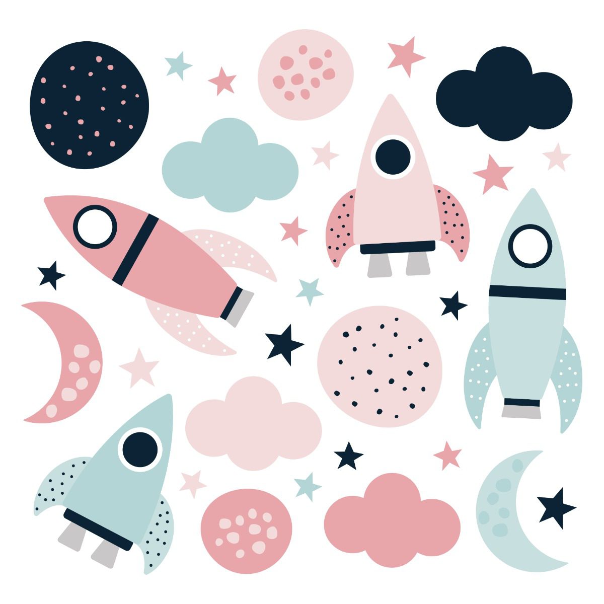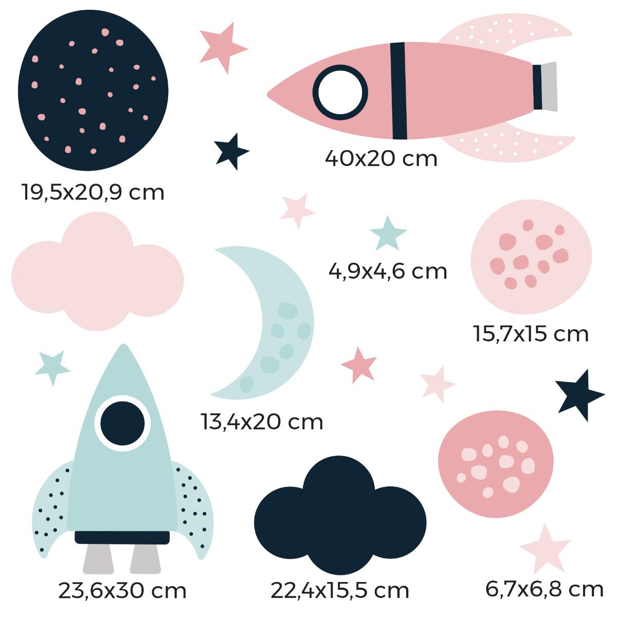 Características e Dimensões do Adesivo de Parede Espaço e Foguetes Rosa