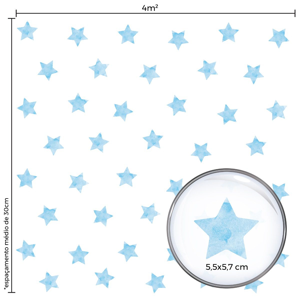 Características e Dimensões do Adesivo de Parede Estrelas Aquarela Azul