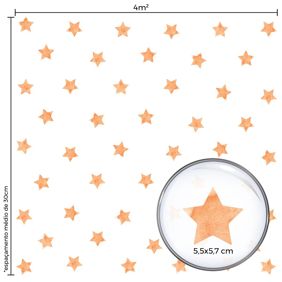 Características e Dimensões do Adesivo de Parede Estrelas Aquarela Laranja