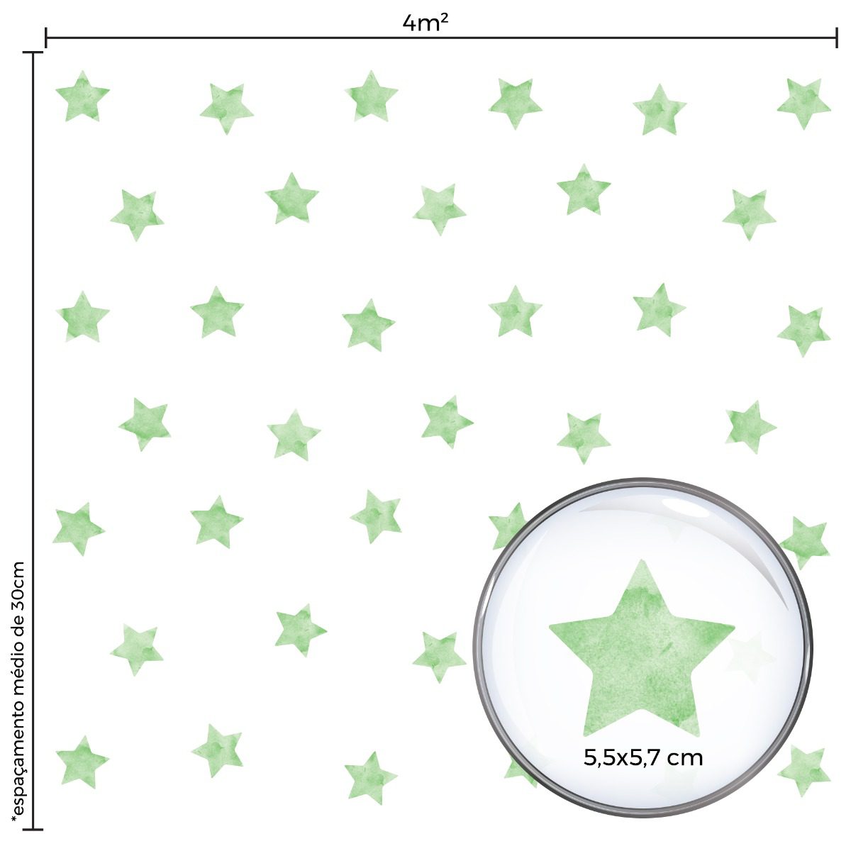 Características e Dimensões do Adesivo de Parede Estrelas Aquarela Verde