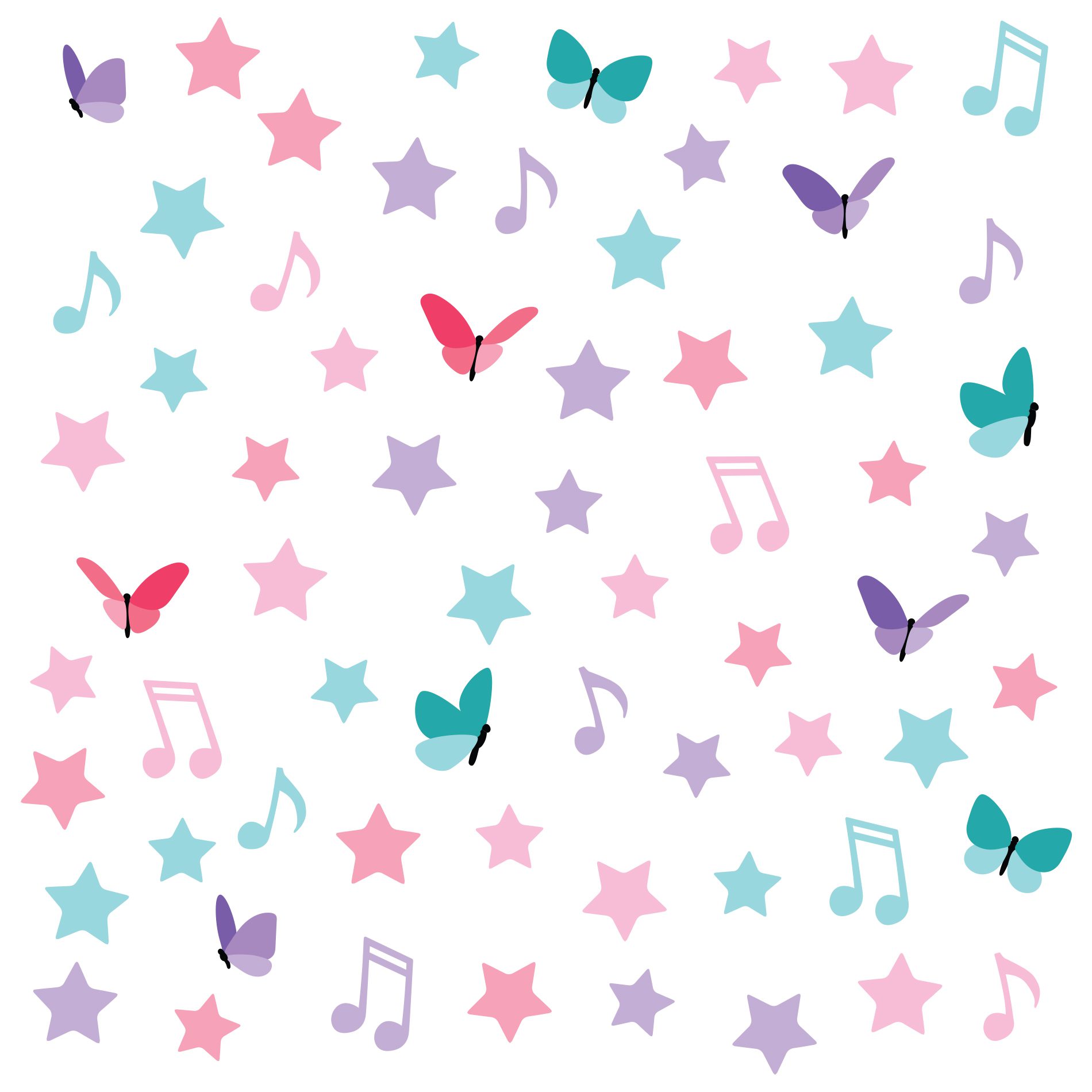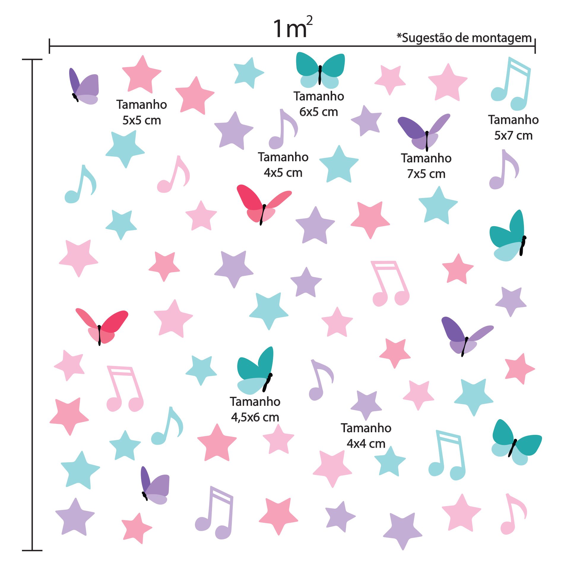 Adesivo de Parede Estrelas Borboletas e Notas 64un Cobre 1m²