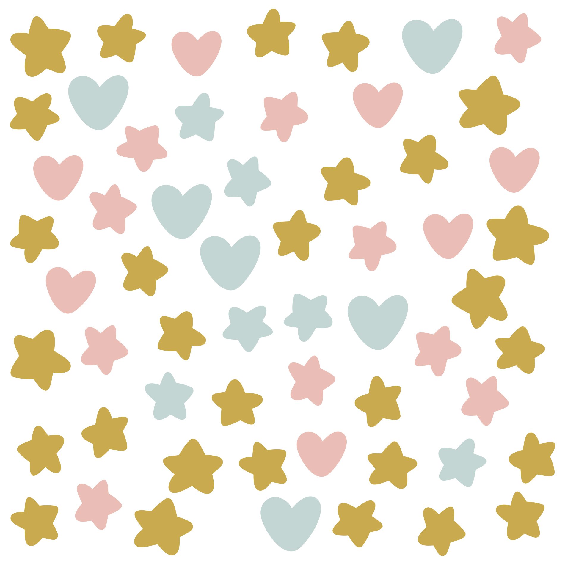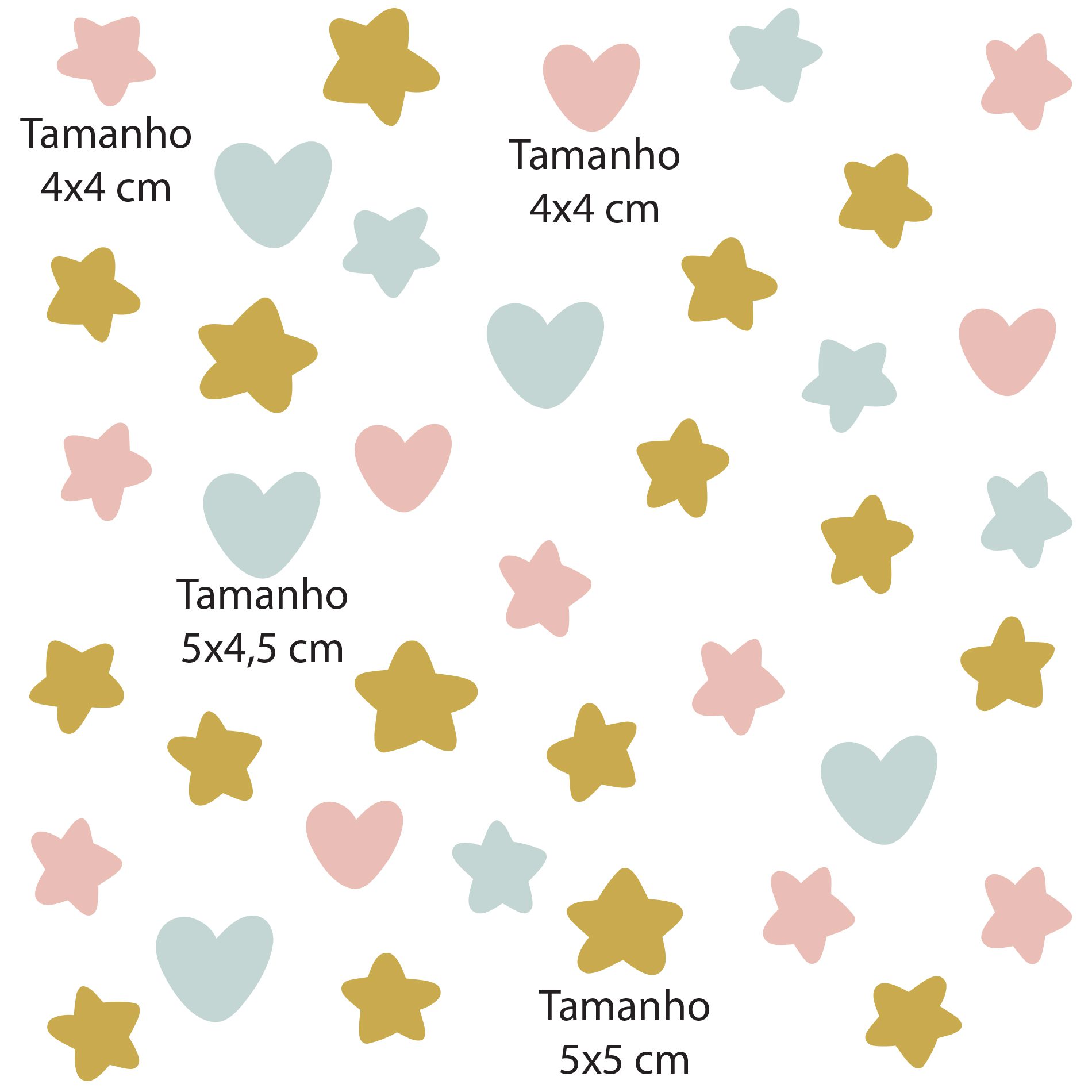 Adesivo de Parede Estrelas e Corações para Quarto Infantil 58un Cobre 2m²