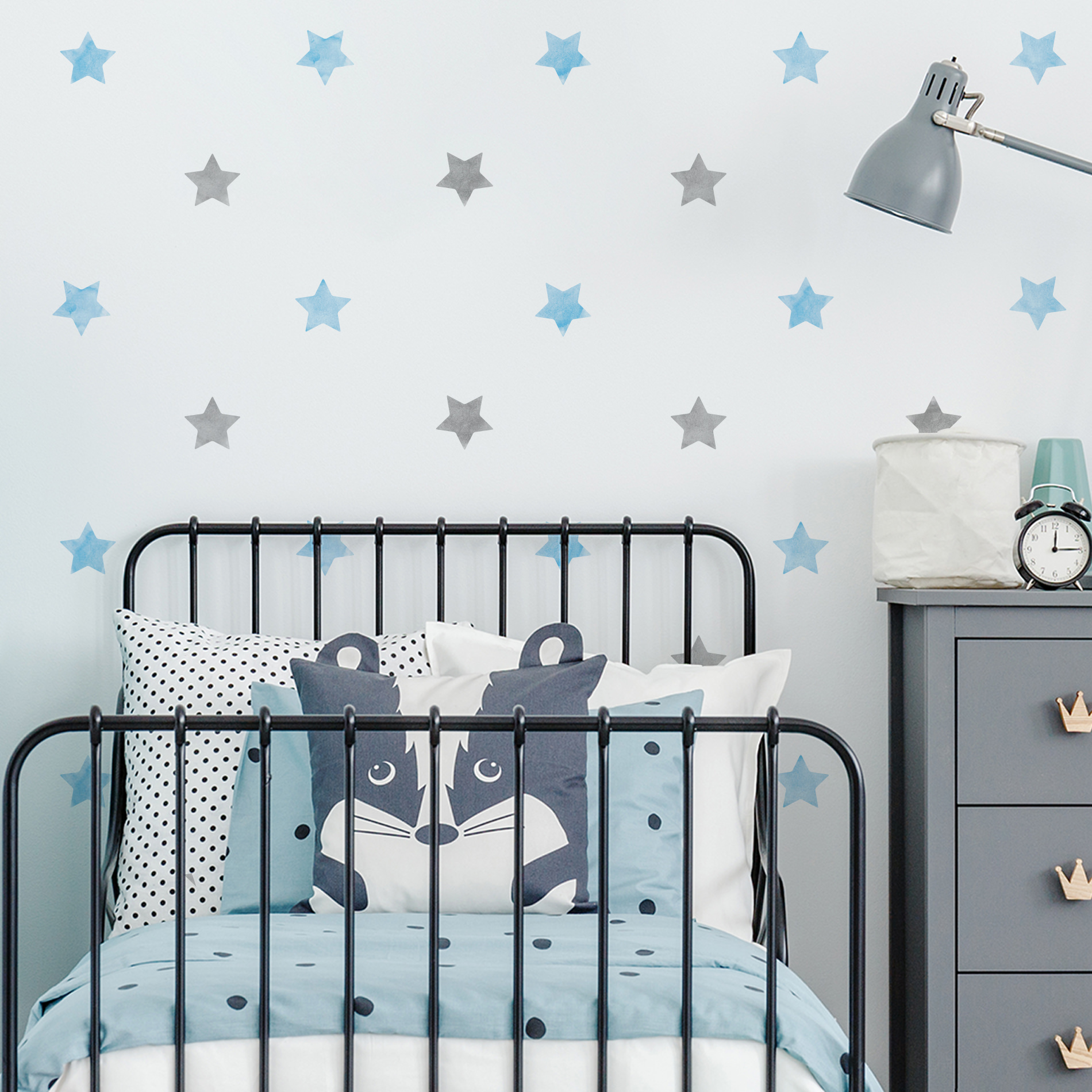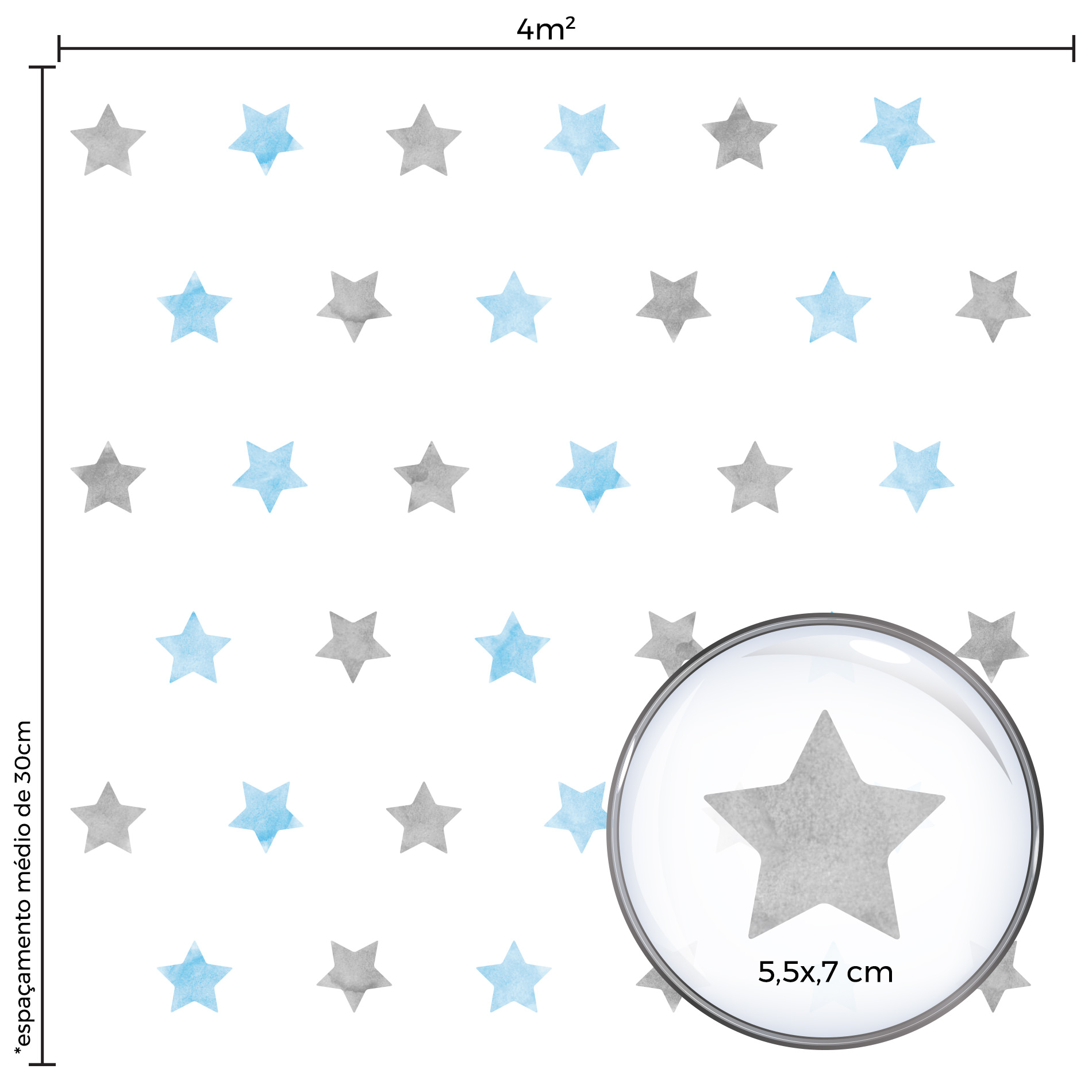 Adesivo de Parede Estrelas Quarto Infantil Azul e Cinza 54un