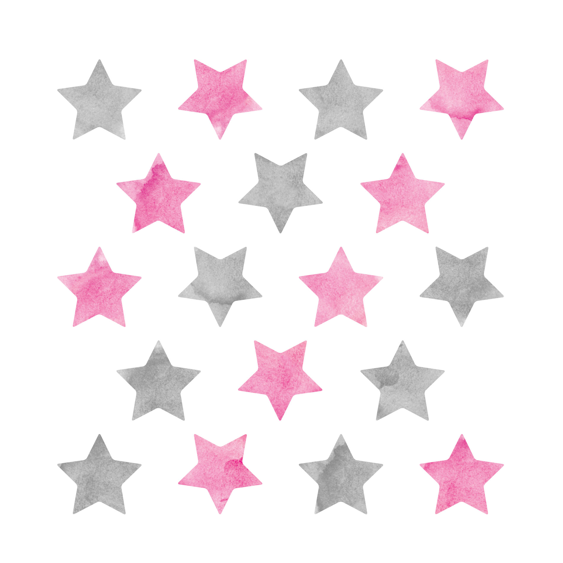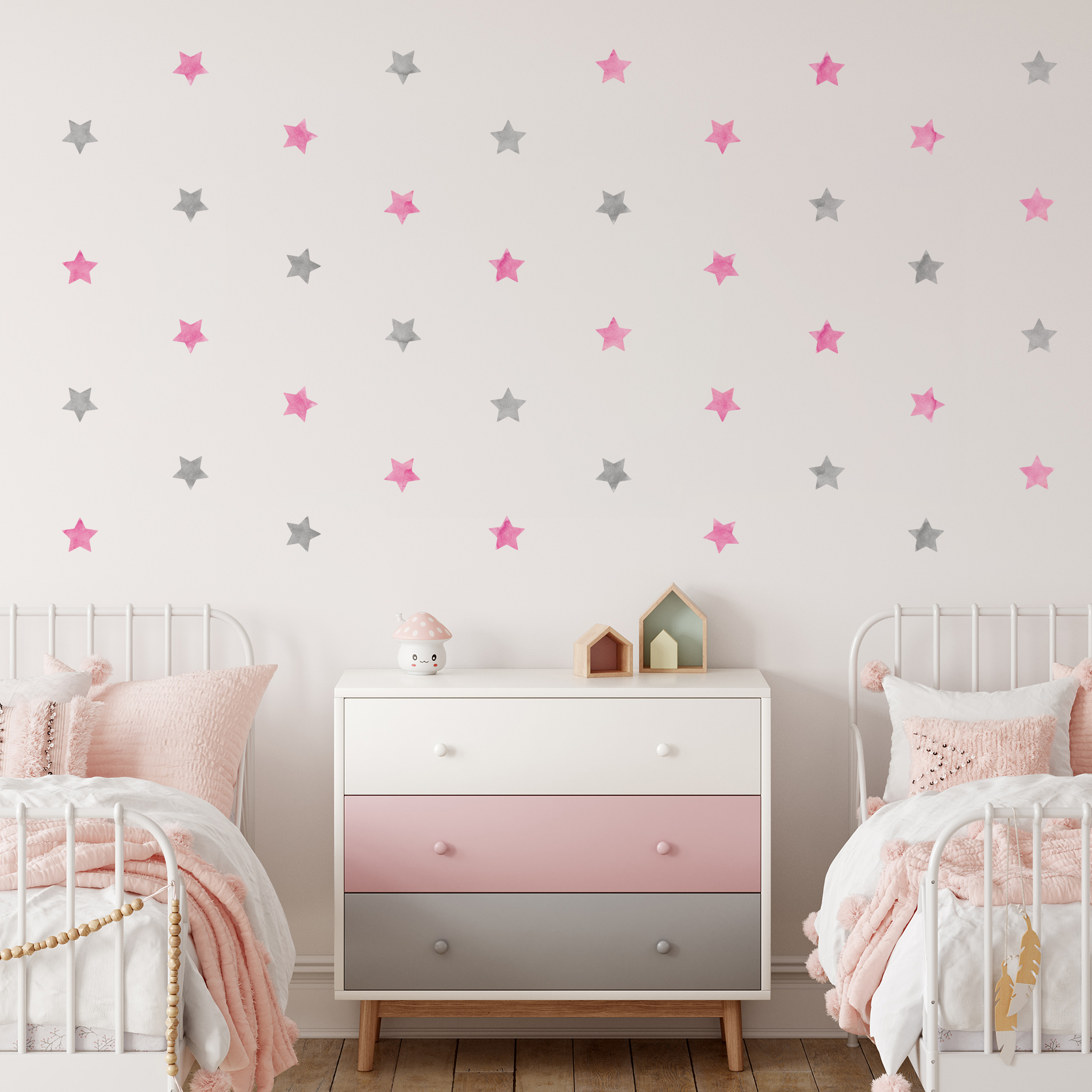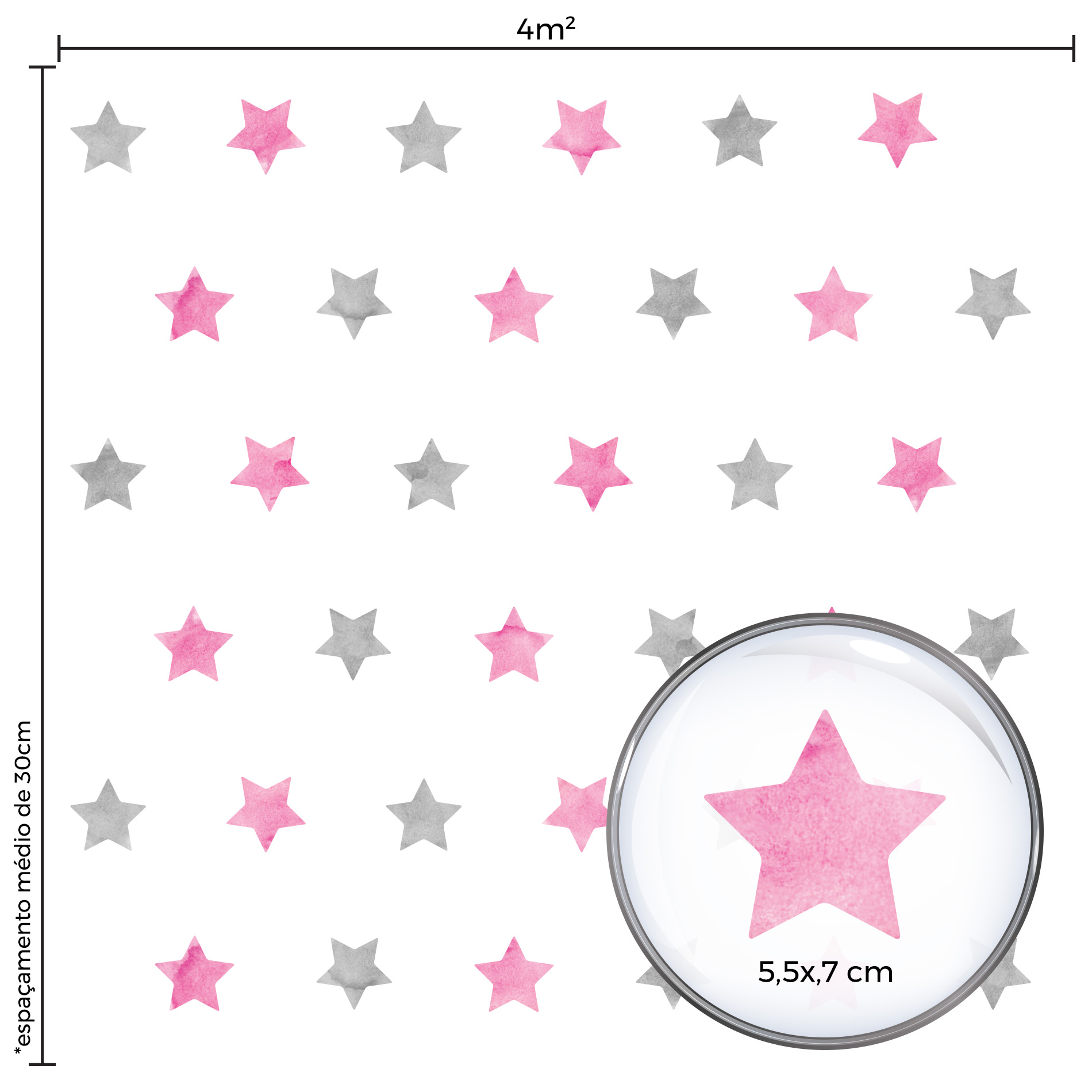 Adesivo de Parede Estrelas Quarto Infantil Rosa e Cinza 54un