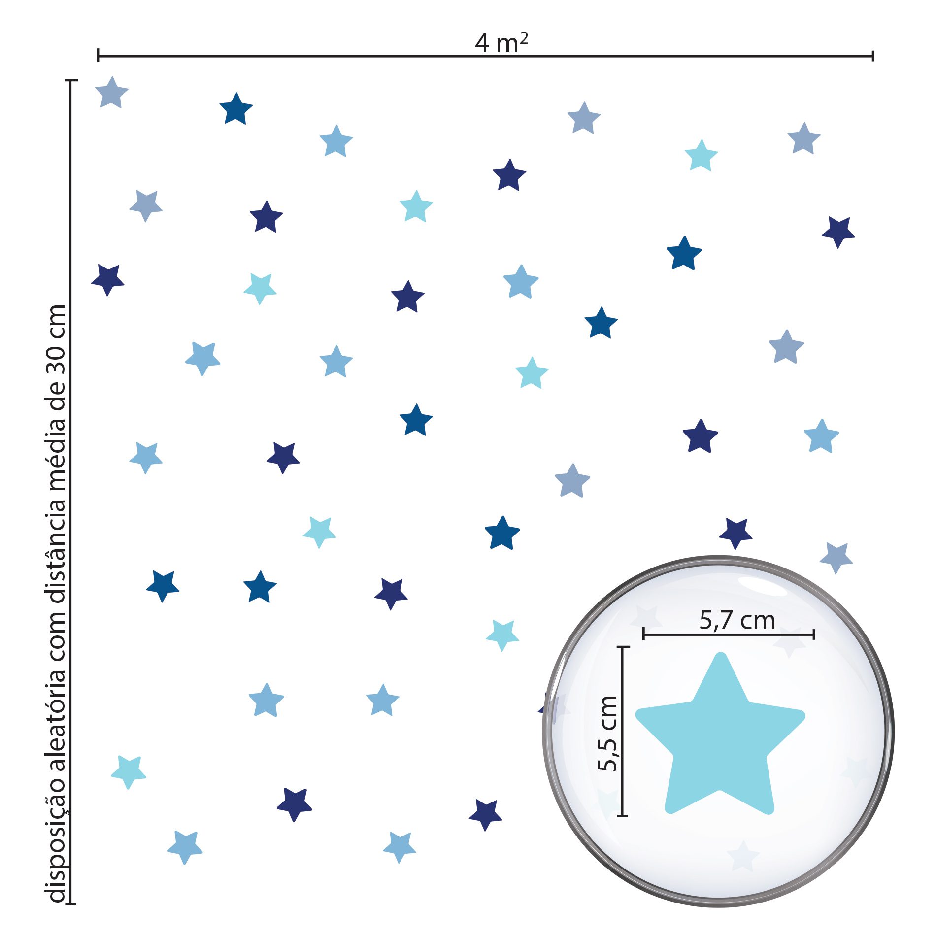 Características e Dimensões do Adesivo de Parede Estrelas