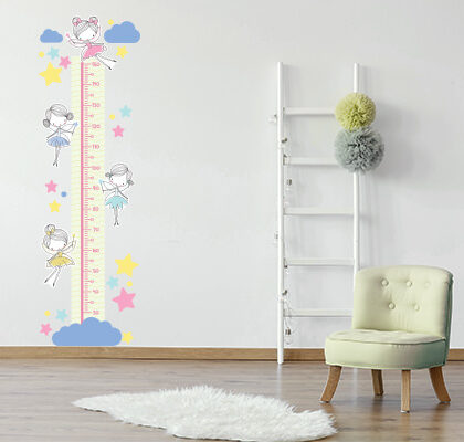 • Tipo de produto: Medidor de altura infantil em adesivo de parede, ideal para acompanhar o crescimento das meninas com charme e diversão.