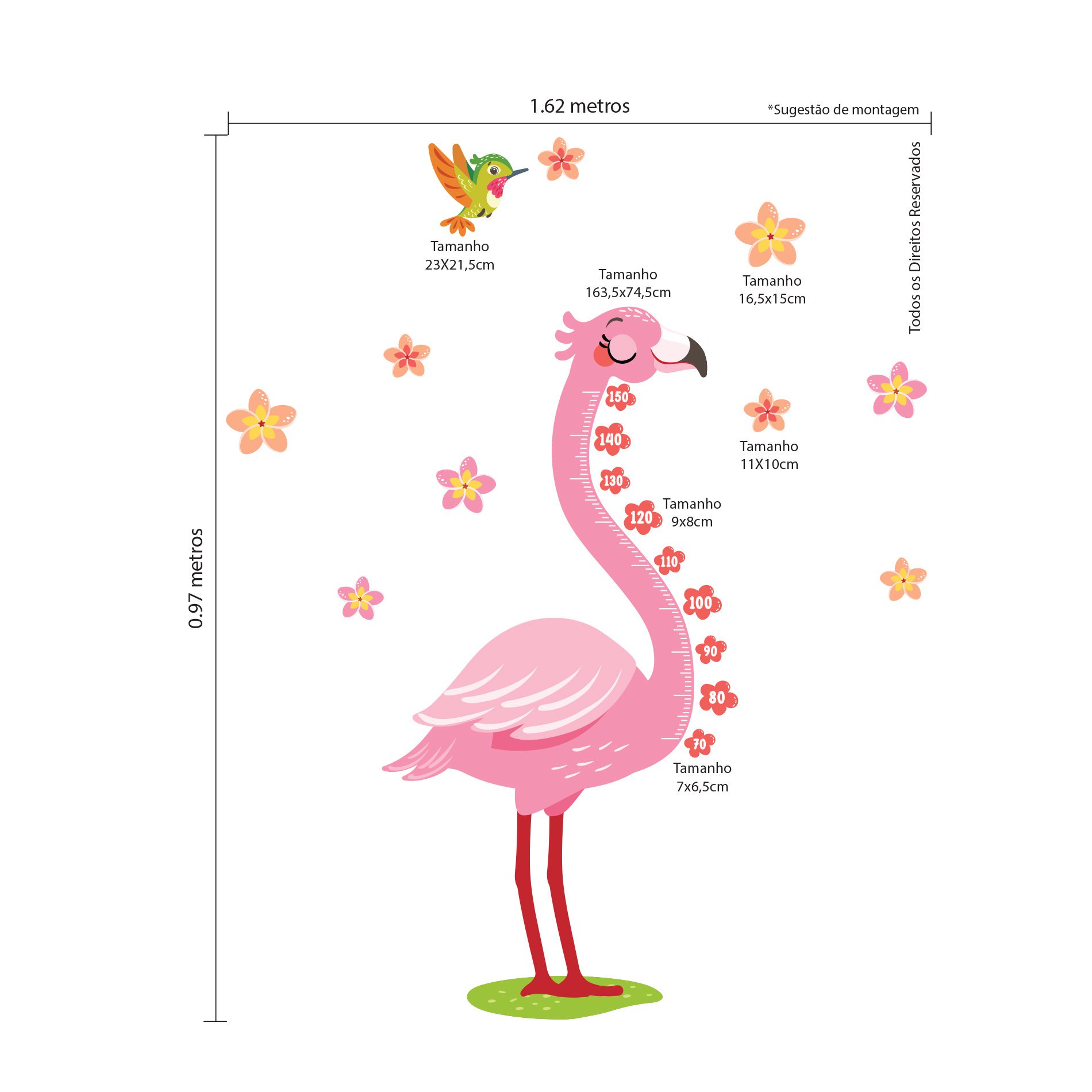 Adesivo de Parede Flamingo Régua de Crescimento 187x78cm
