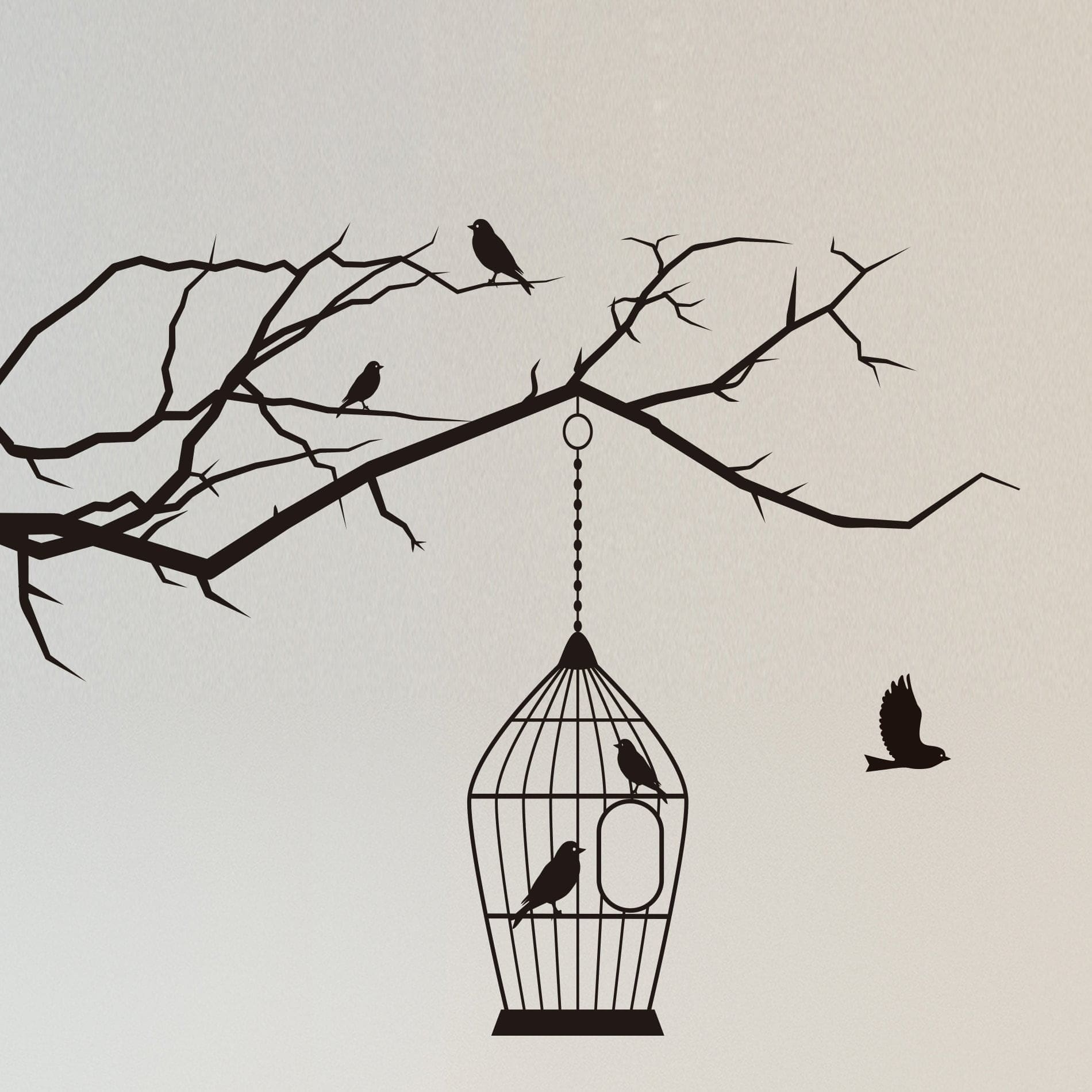 Adesivo de Parede Pássaros e Gaiola Para Sala