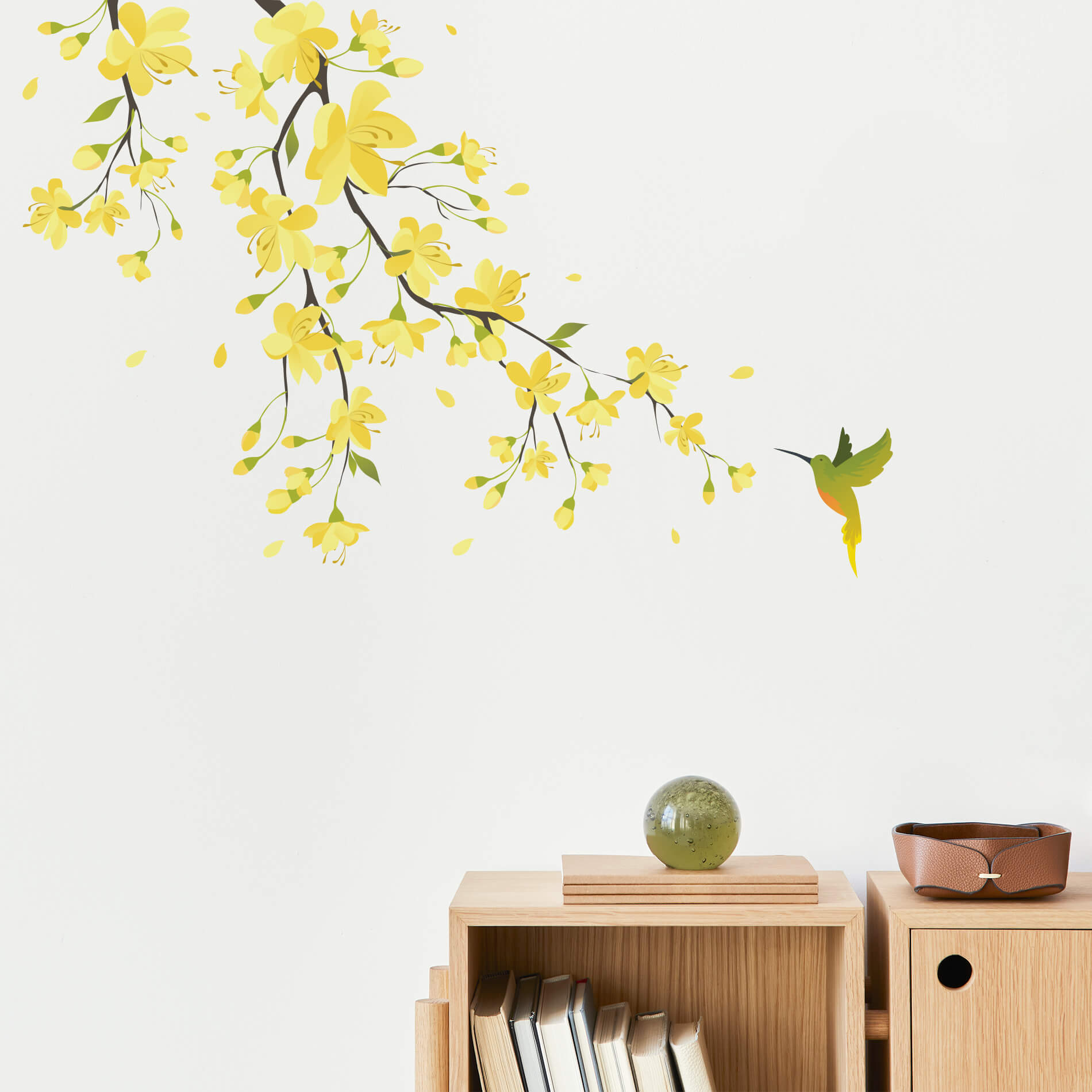 Adesivo de Parede Galhos Floral Beija Flor Amarelo Esquerda