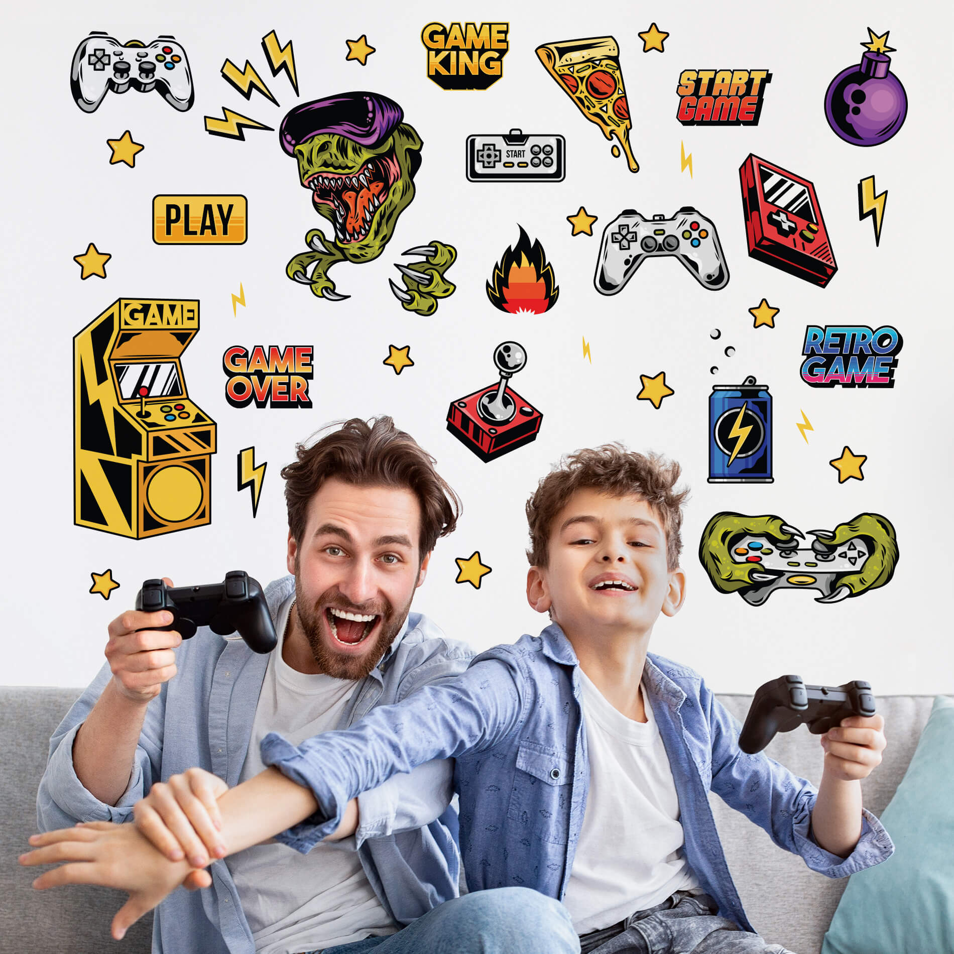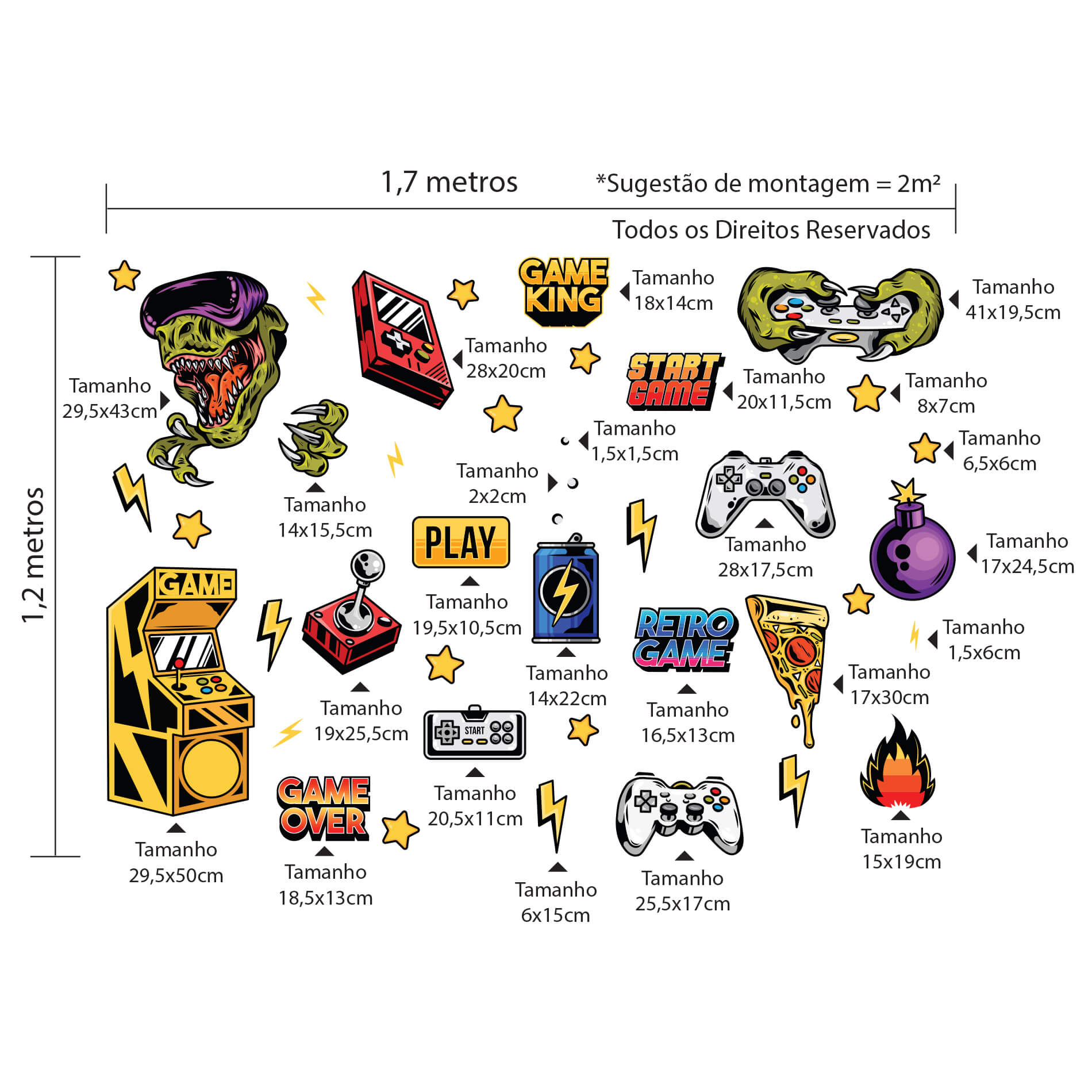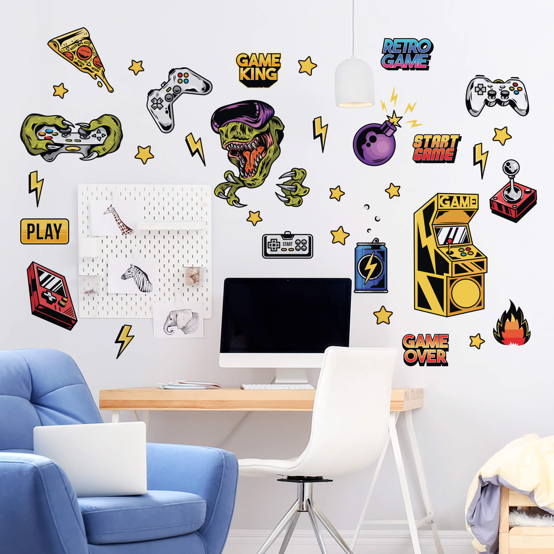 Os adesivos vêm recortados e você mesmo distribui os desenhos como preferir, isso facilita a aplicação evitando a formação de bolhas e promovendo um perfeito acabamento. Decore quarto gamer de maneira muito mais agradável e fácil!