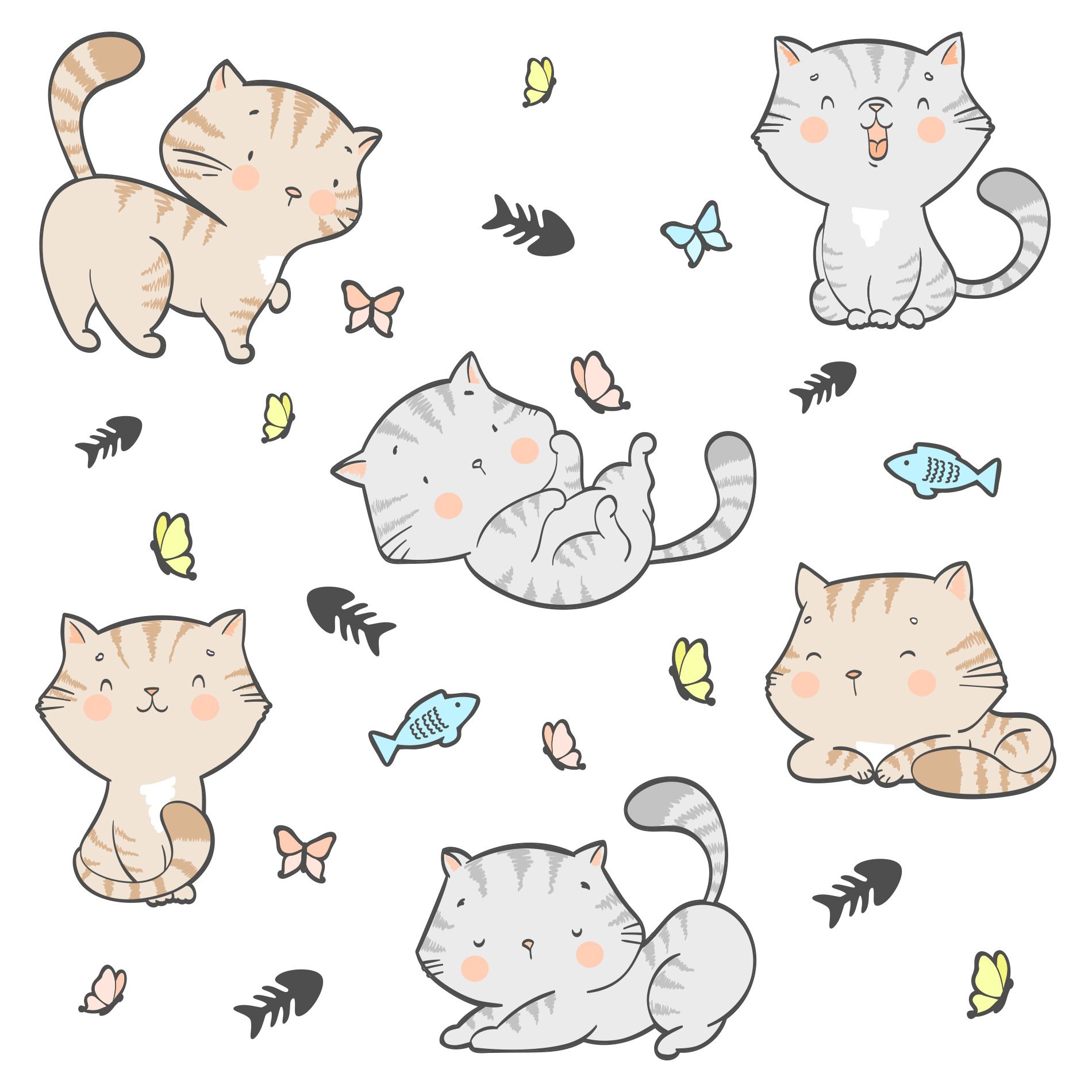 Adesivo de Parede Gatos e Borboletas 6 Gatinhos