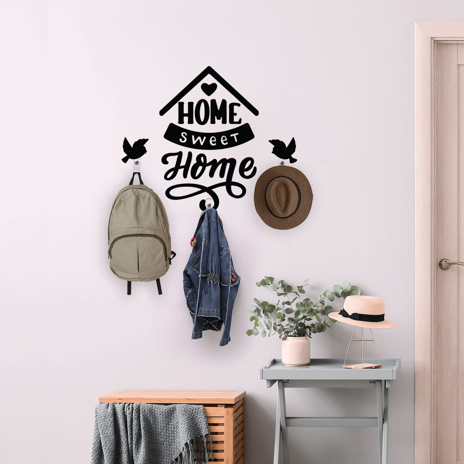 Adesivo de Parede com Ganchos Frase Home SweethomeAdesivo de Parede Frase Organizador Home Sweet Home 60x70cm com 3 Ganchos