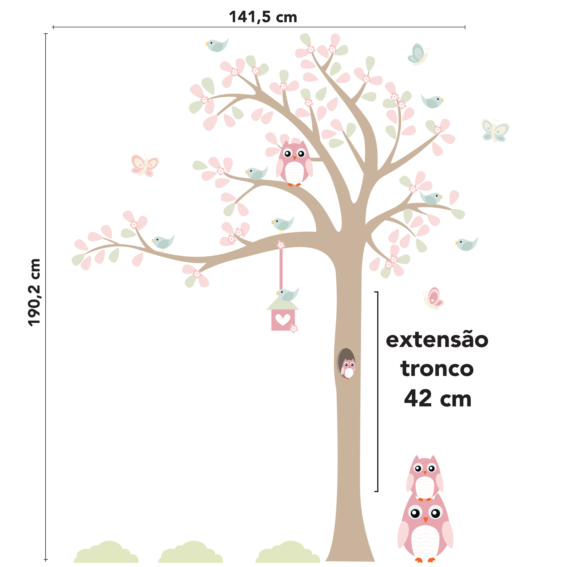Dimensões e Características do Adesivo de Parede Árvore Coruja Baby