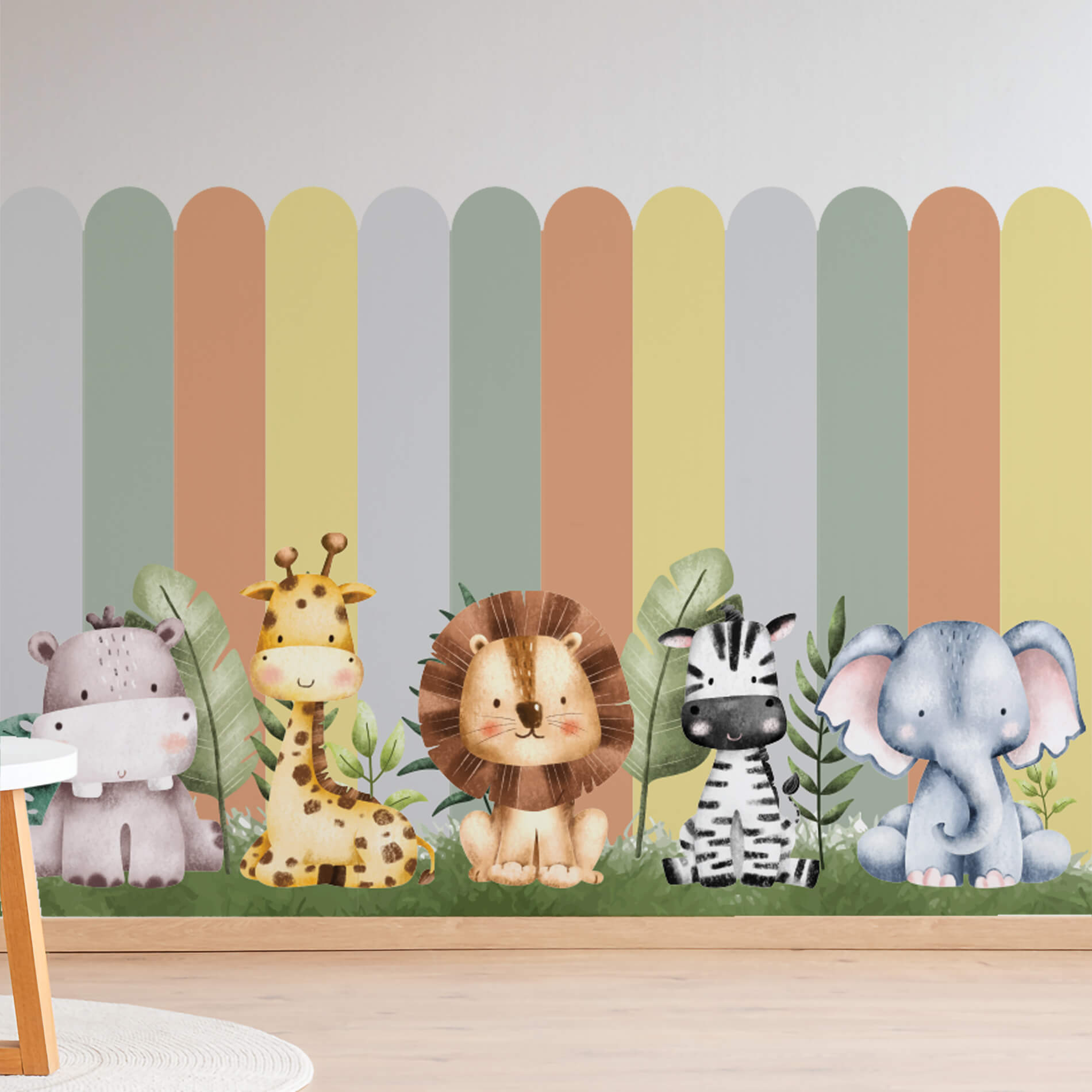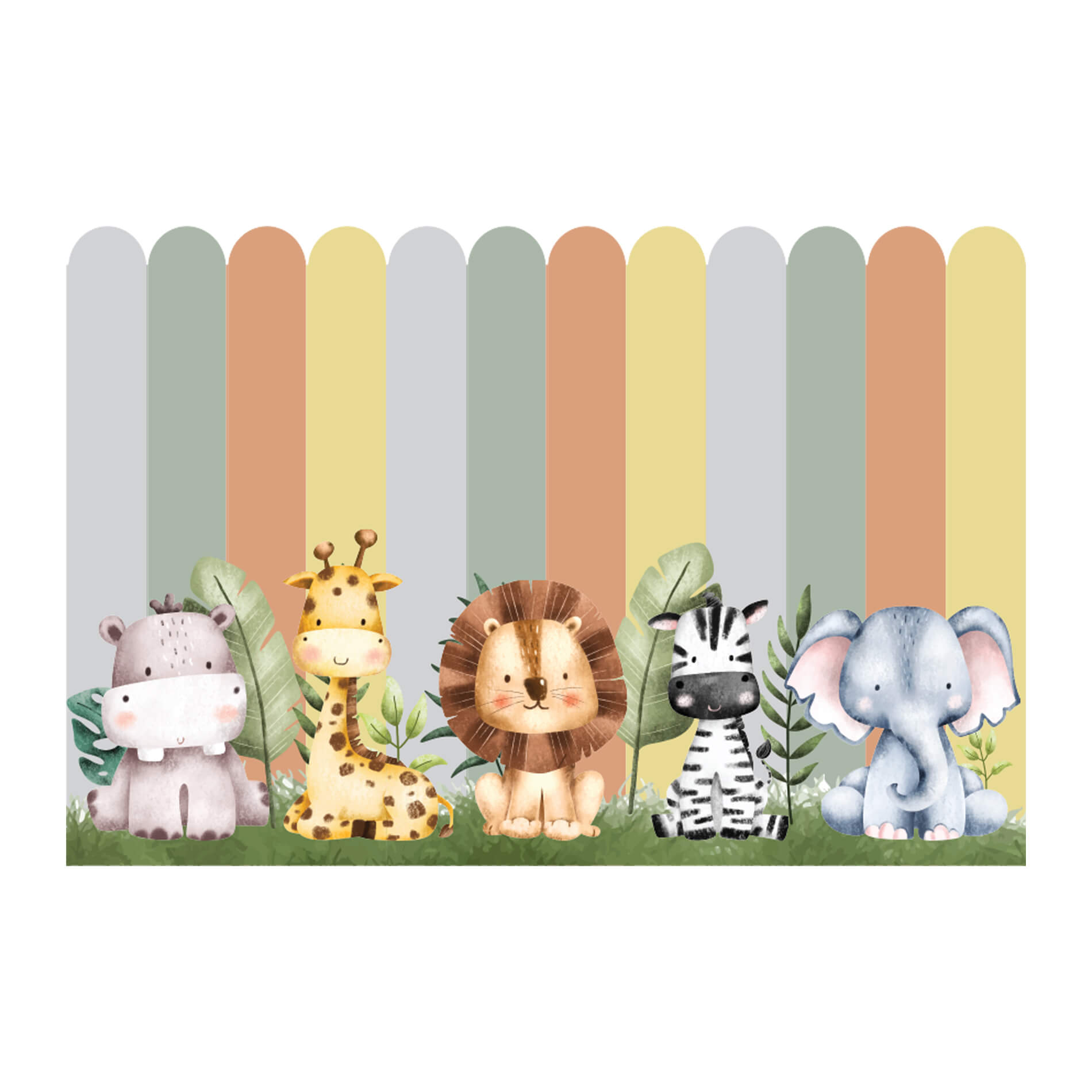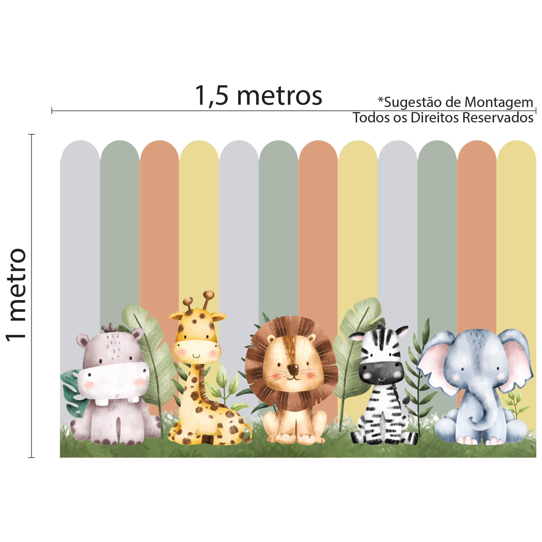 Adesivo de Parede Cerca Colorida Animais Safari Infantil