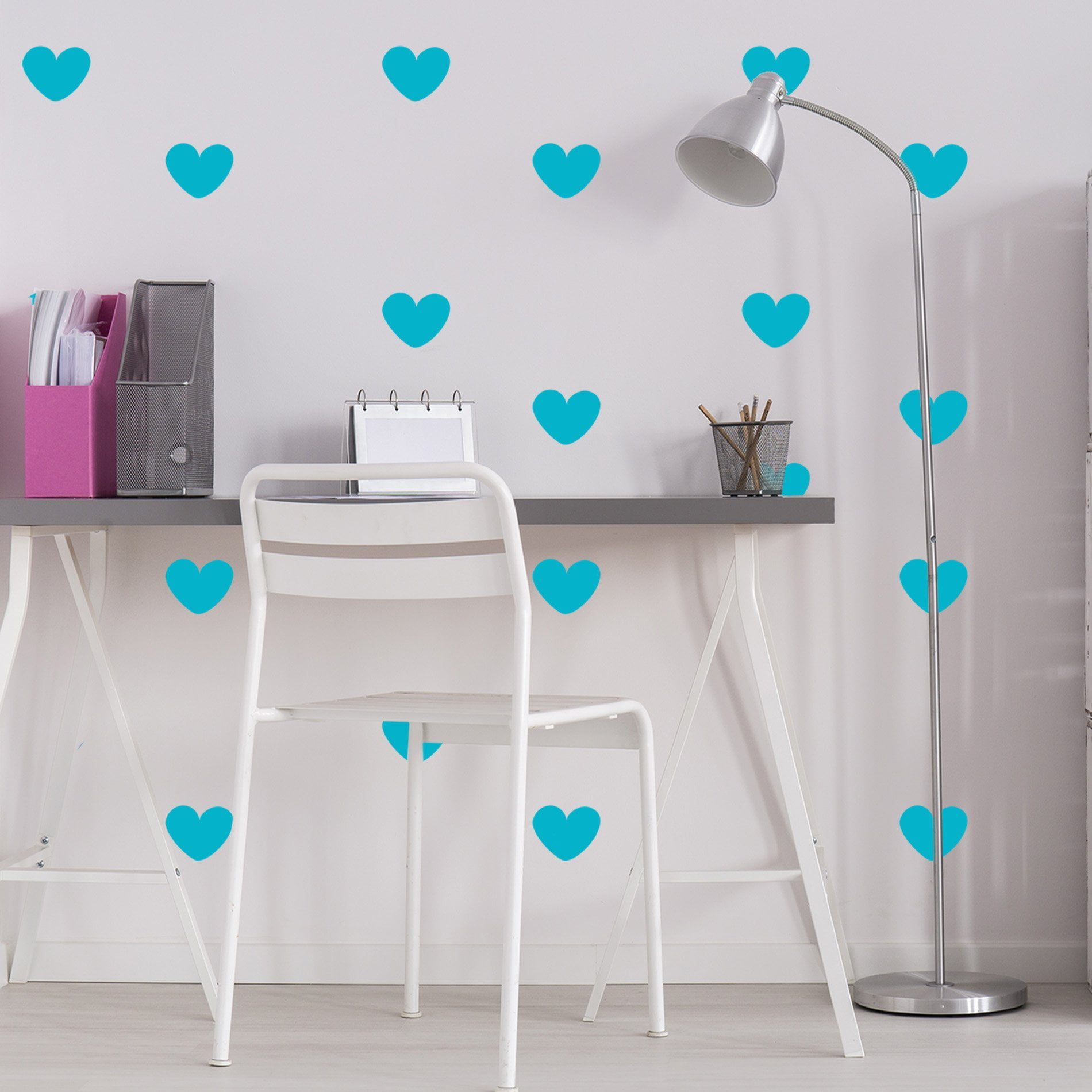 Adesivo de Parede Infantil Coração Azul Turquesa – 55 unidades
