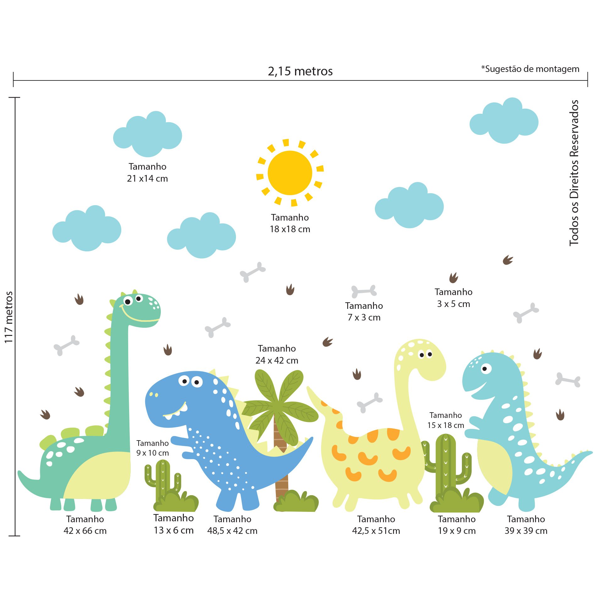 Dimensões e Características do Adesivo de Parede Dinossauro Baby