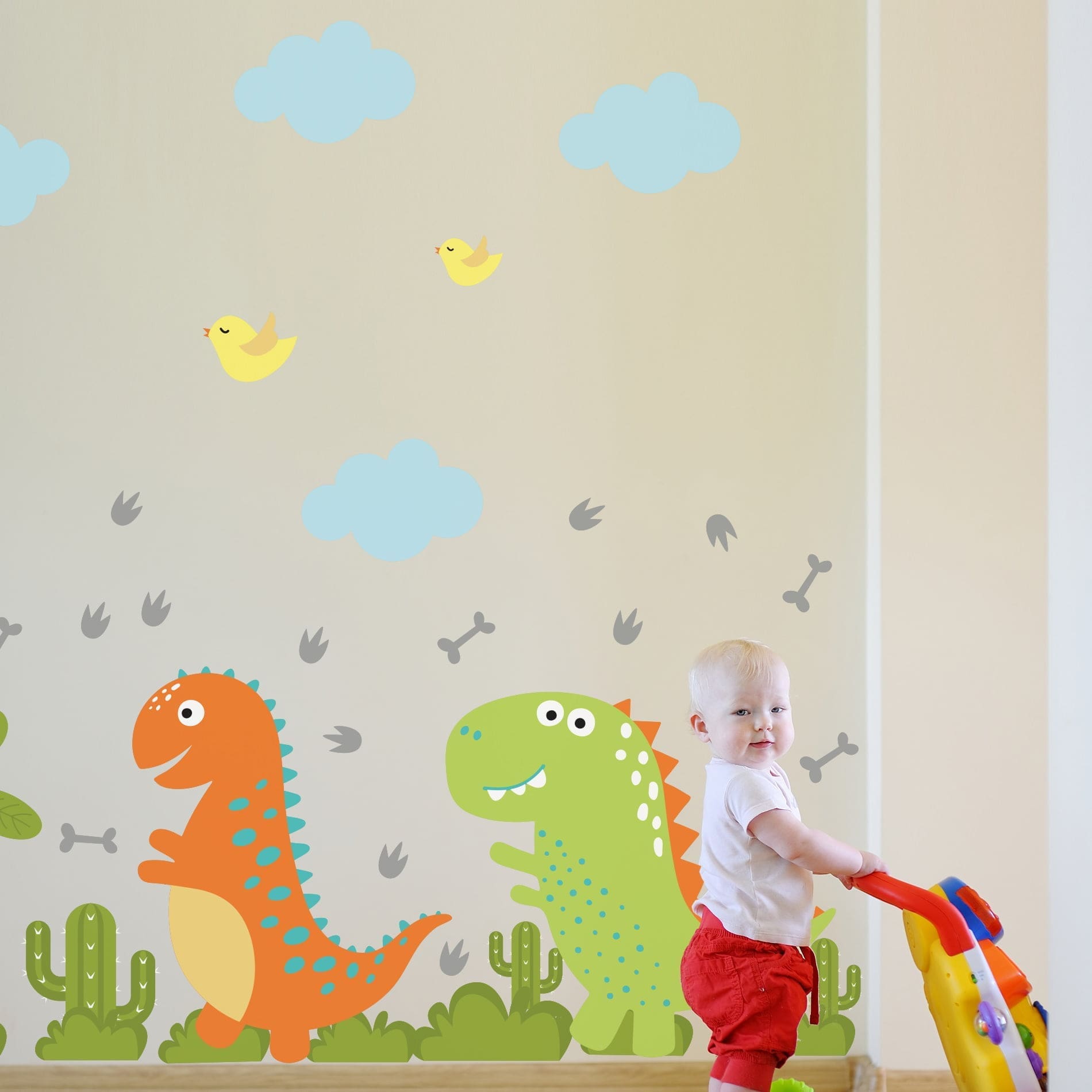 Para decorar o quarto nada melhor do que o Adesivo de Parede Infantil Dinossauro Baby cheio de simpáticos dinossauros. O tema dinossauro sempre está em alta entre os meninos e eles vão adorar participar da decoração do quarto.