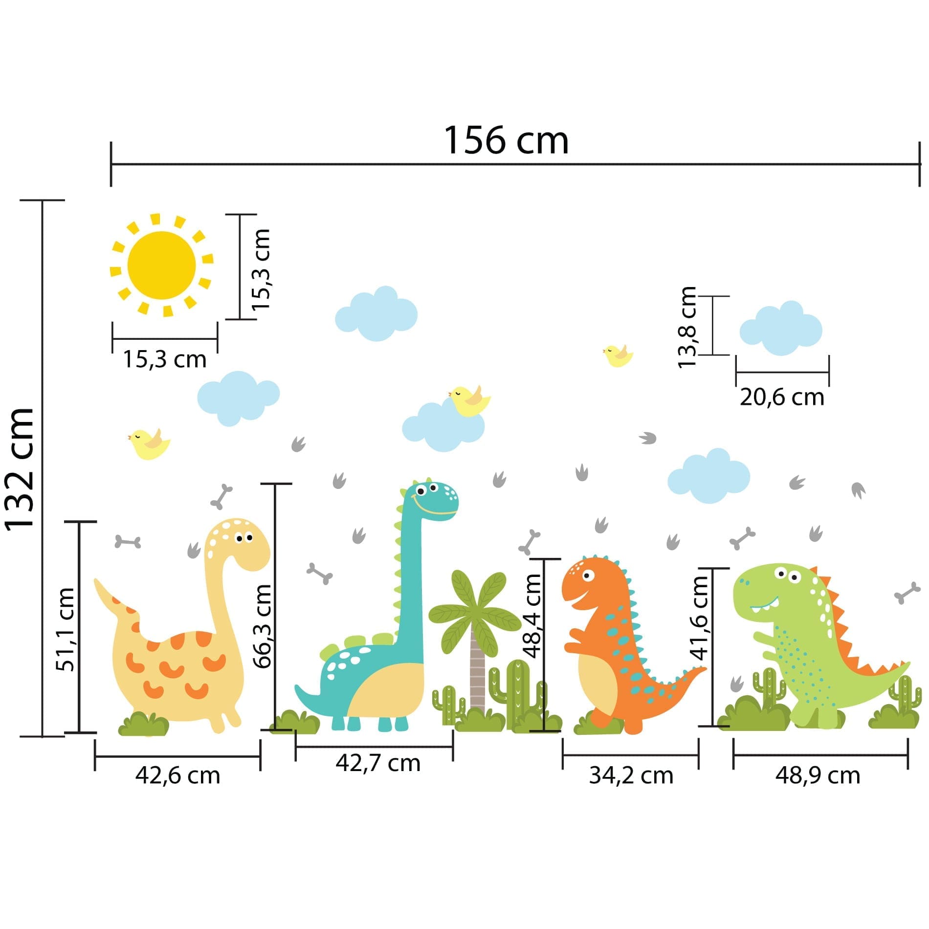 Dimensões do Adesivo de Parede Infantil Dinossauro Baby: