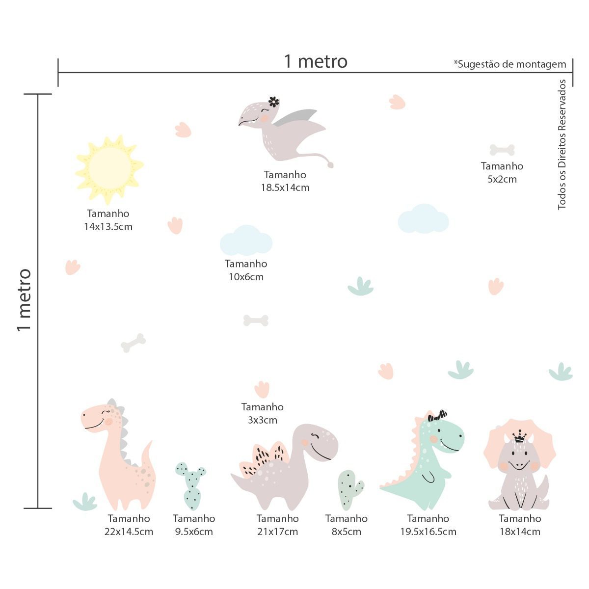 1 Adesivo de Parede Dinossauro tamanho 18x14cm;