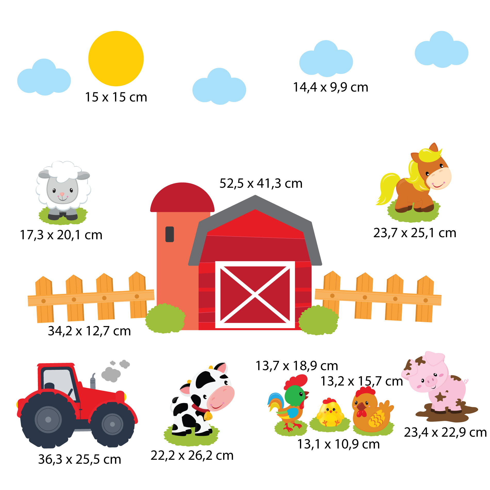 Com este adesivo encantador, você pode transformar o quarto das crianças em um ambiente alegre e divertido, inspirado em uma fazenda feliz.