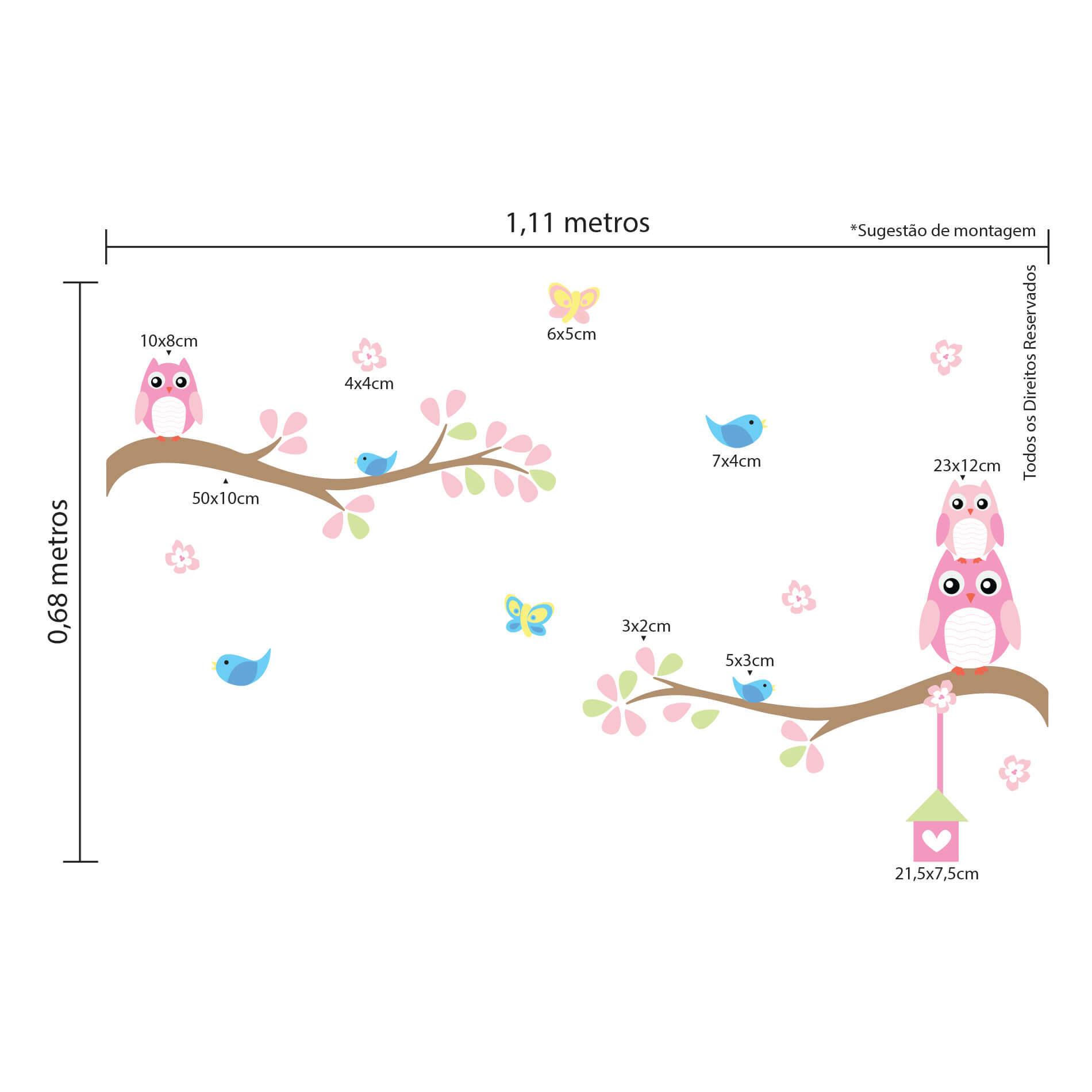 Dimensões e Características do Adesivo de Parede Árvore Coruja Baby