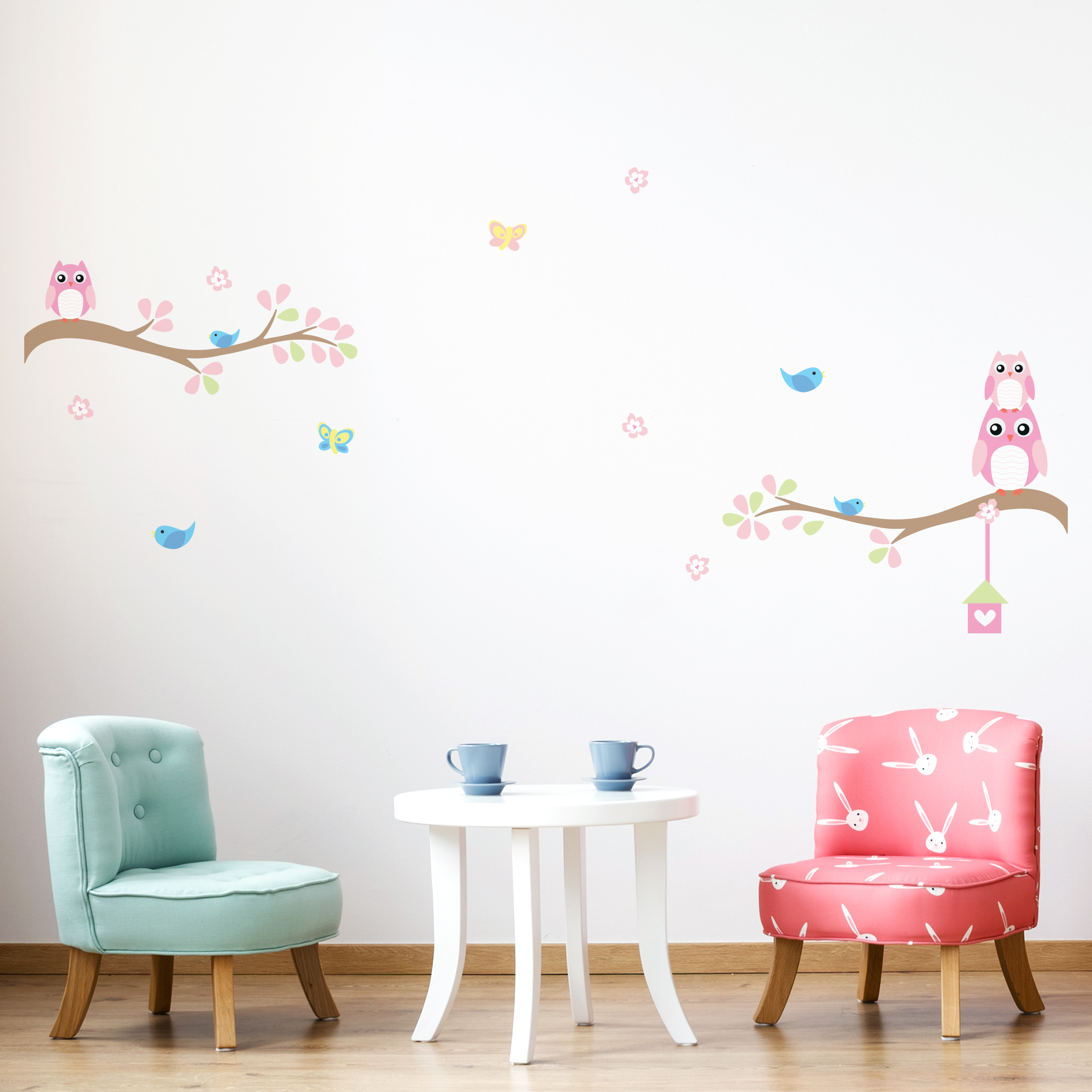 Adesivo de Parede Infantil Galhos Coruja Baby em Candy Colors