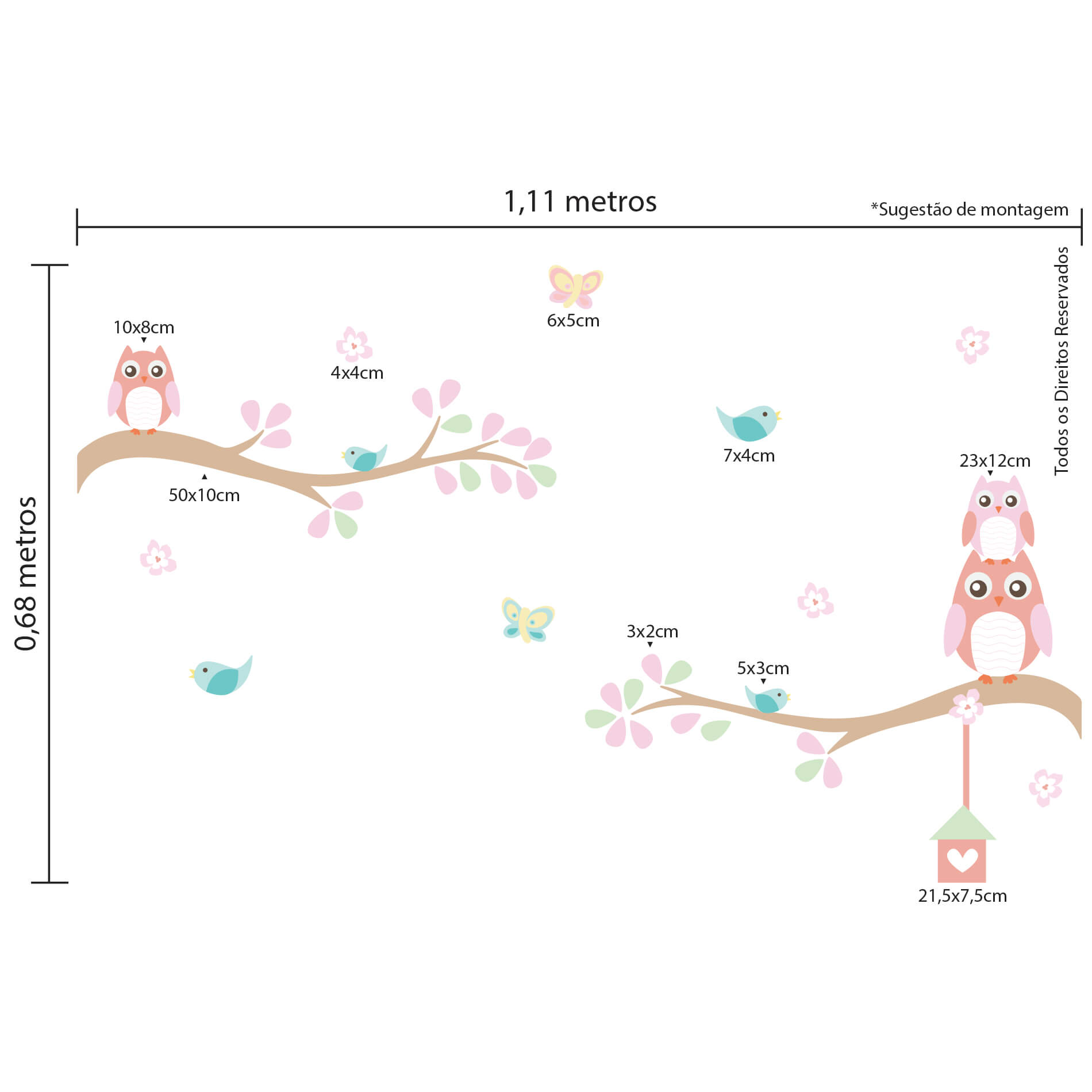 Dimensões e Características do Adesivo de Parede Árvore Coruja Baby