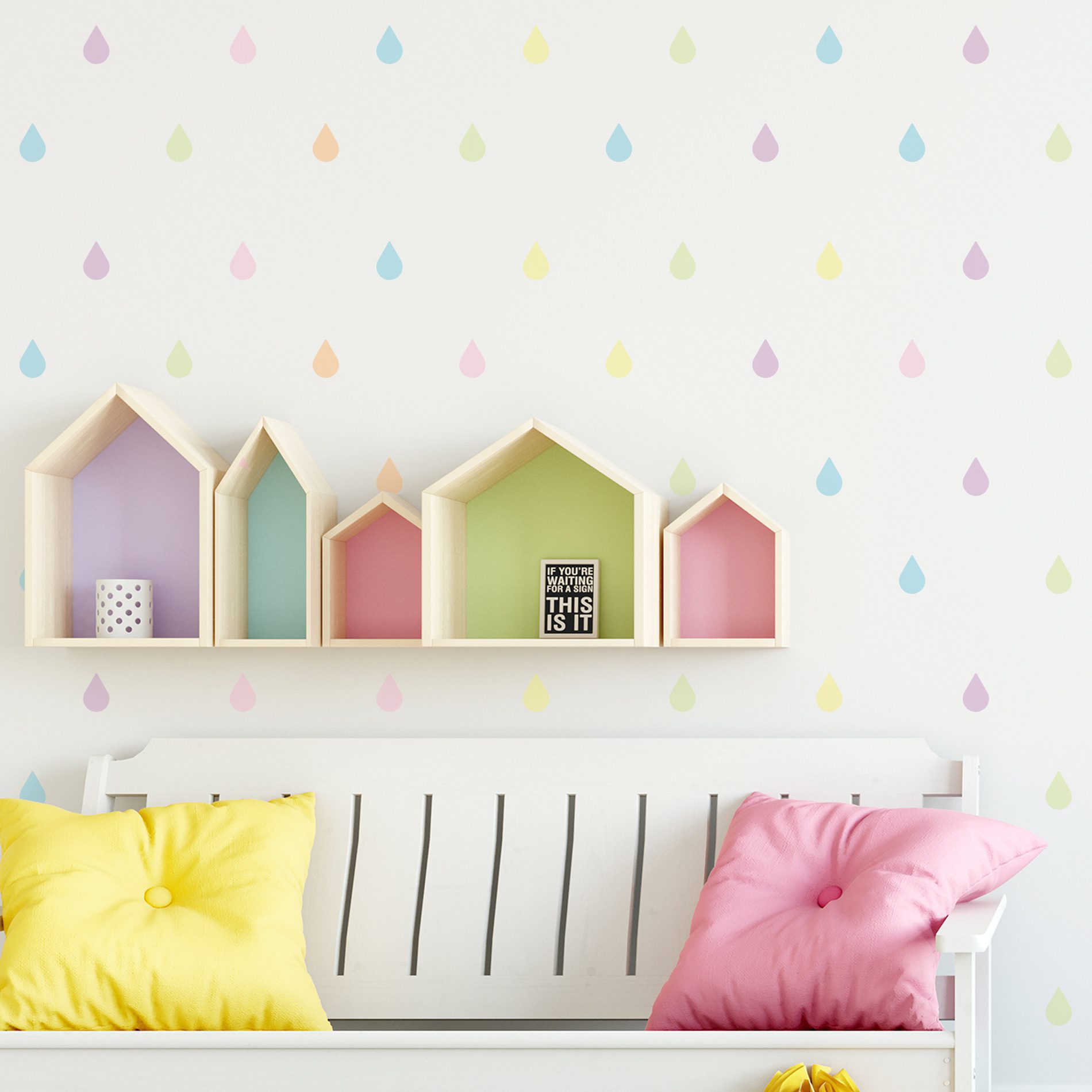 Adesivo de Parede Infantil Gotas Aquarela 5x3cm Cobre 3m²