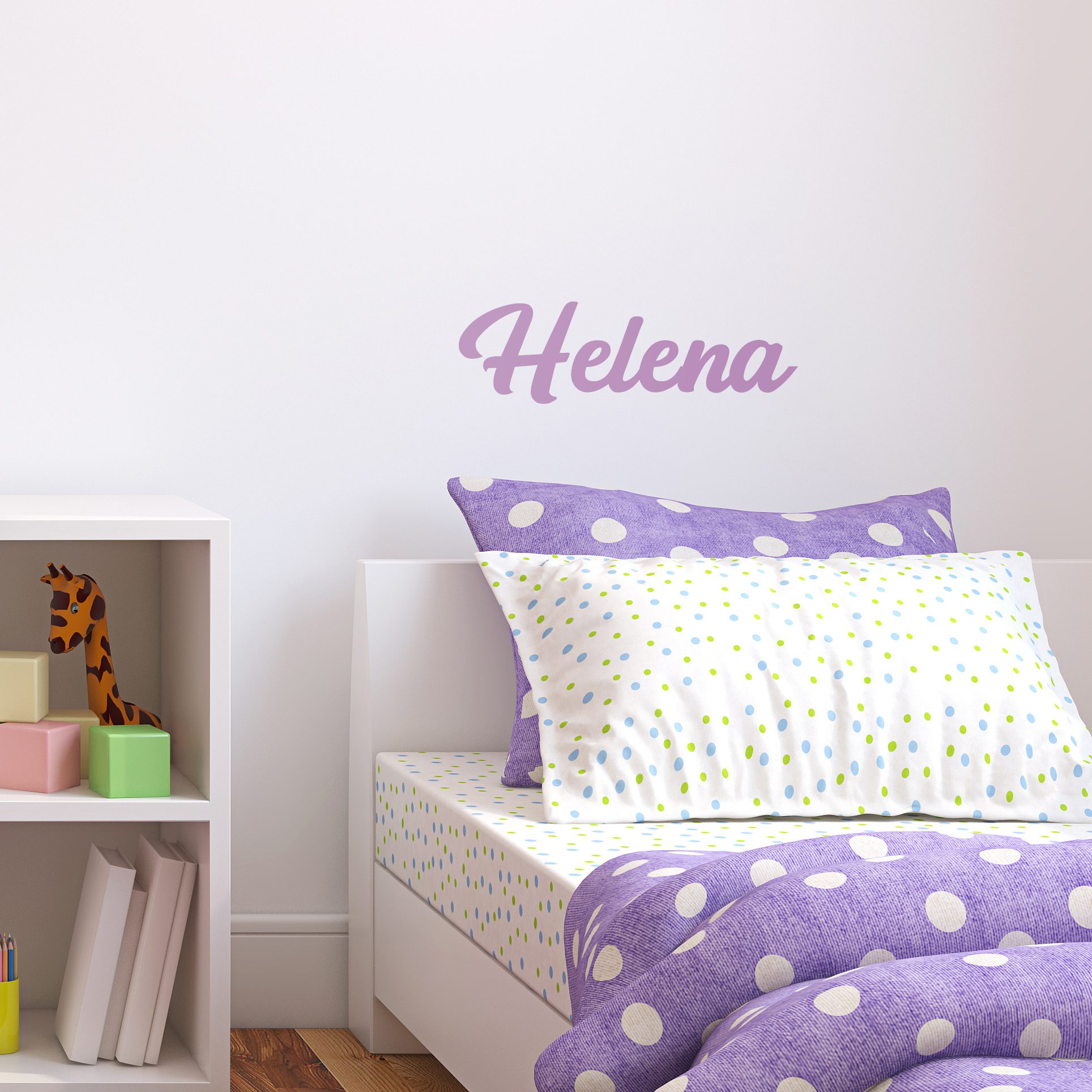 Em letra cursiva, o adesivo de nome personalizado tem em média 50cm de comprimento e a altura proporcional ao comprimento, varia conforme o tamanho do nome. Tem várias cores para escolher. É fácil de aplicar e enviamos espátula e manual de aplicação. Pode ser aplicado na parede, madeira ou qualquer superfície lisa.