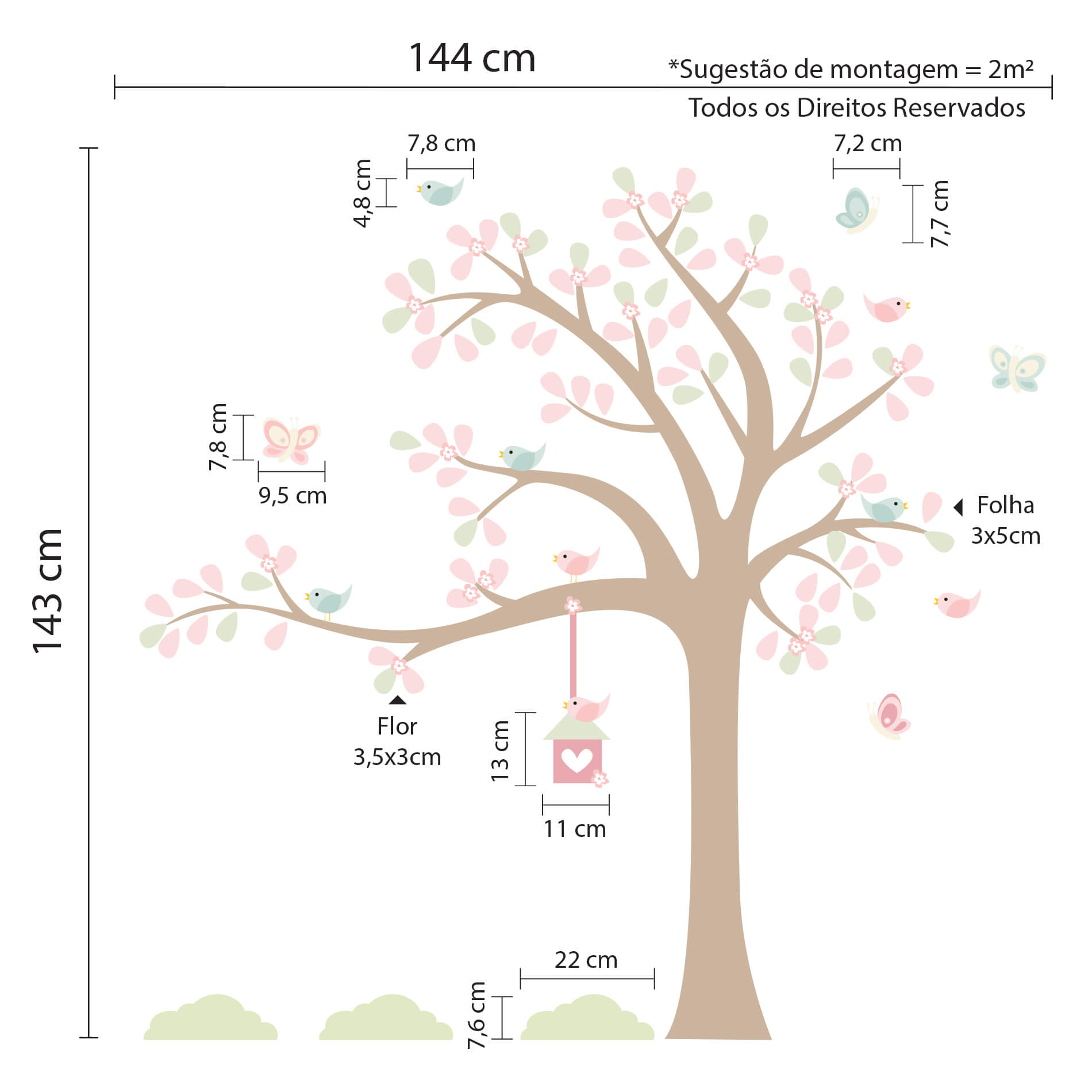 1 adesivo de Árvore: 144cm de largura x 143cm de altura