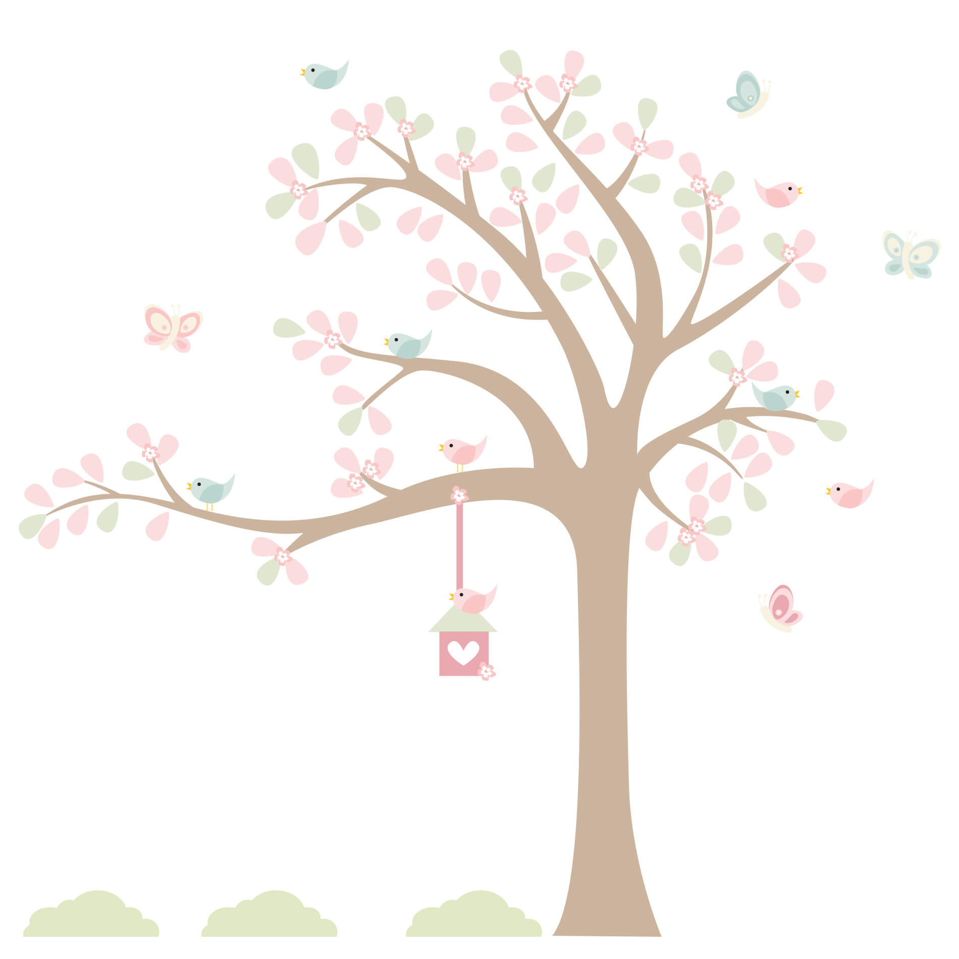 Adesivo de Parede Infantil Meninas Árvore Passarinhos