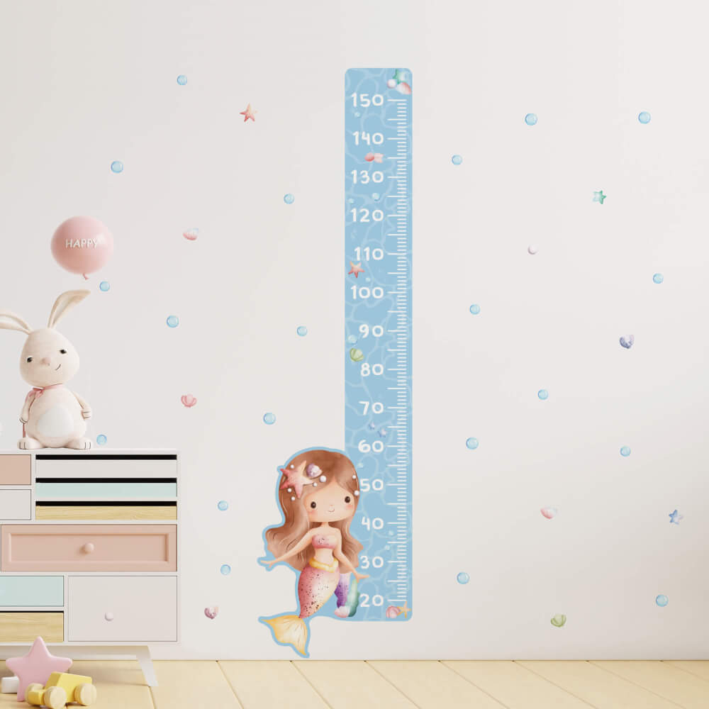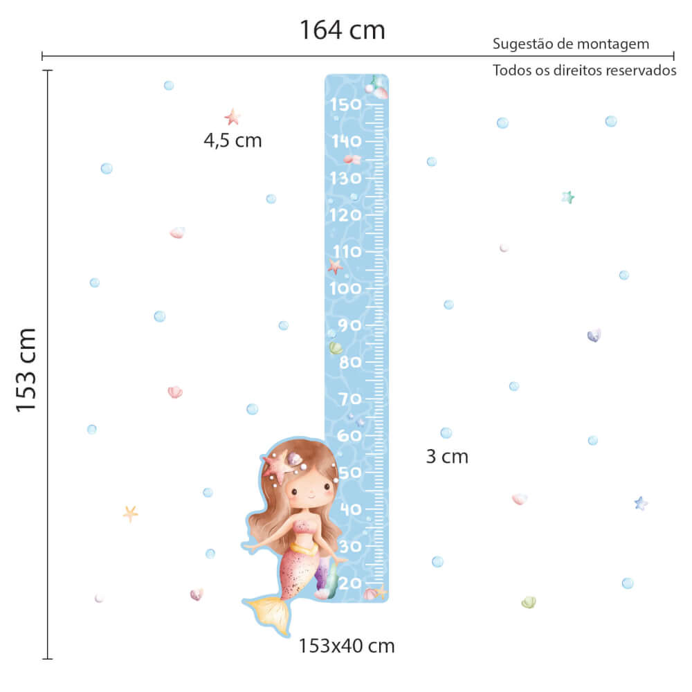 Adesivo de Parede Infantil Fundo do Mar Régua Sereia MeninaAdesivo de Parede Infantil Fundo do Mar Régua Sereia Menina