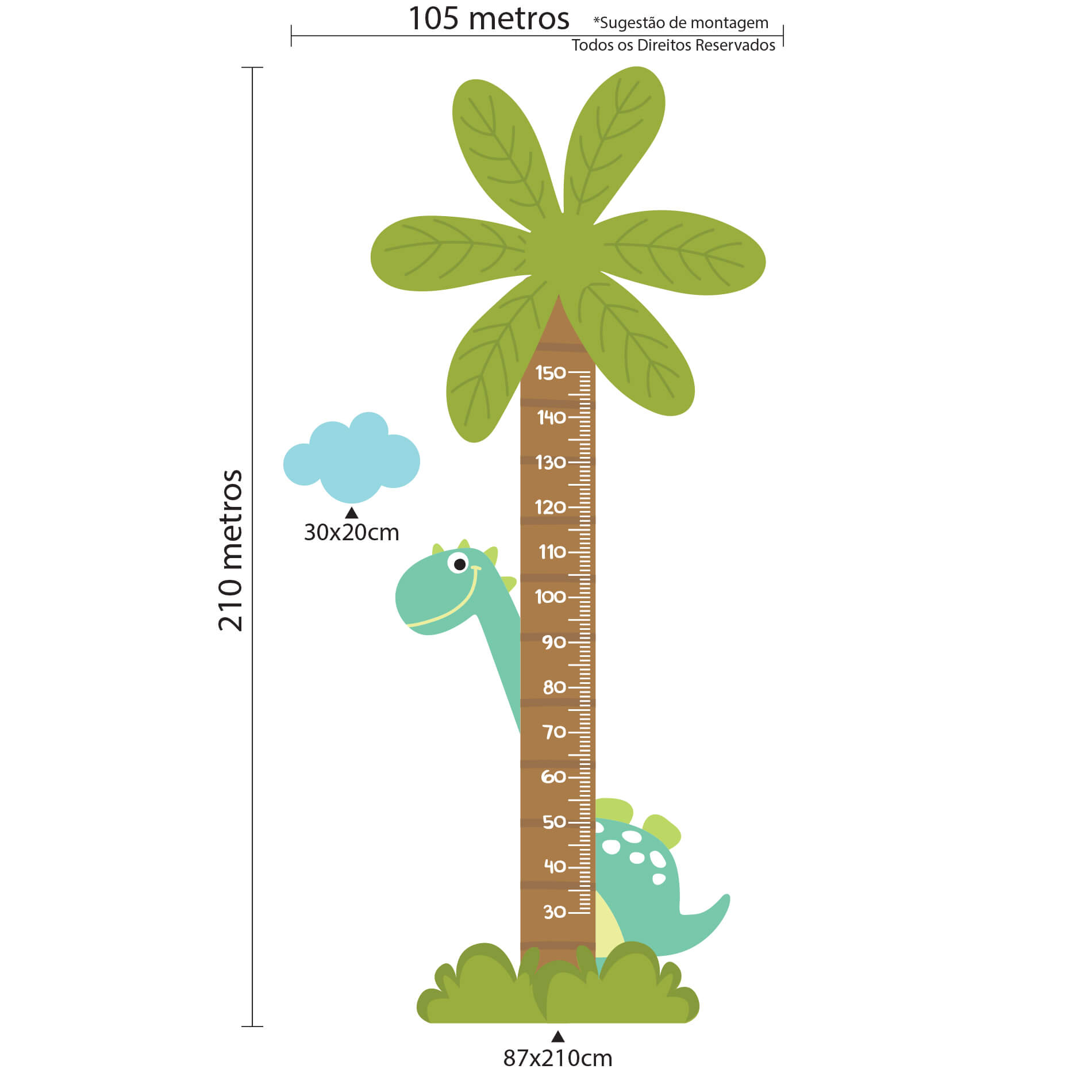 Dimensões e Características do Adesivo de Parede Régua Dinossauro Baby