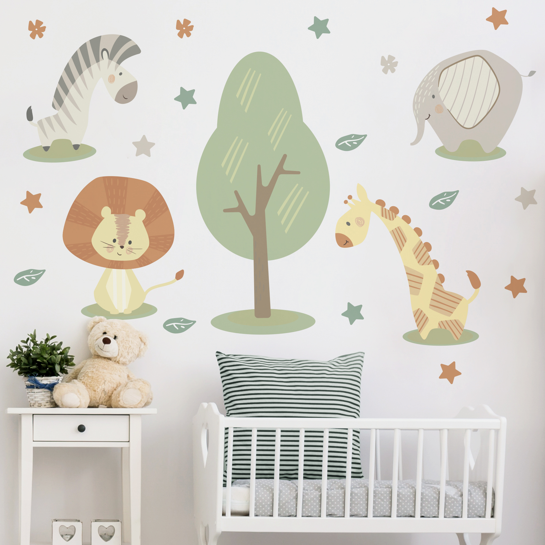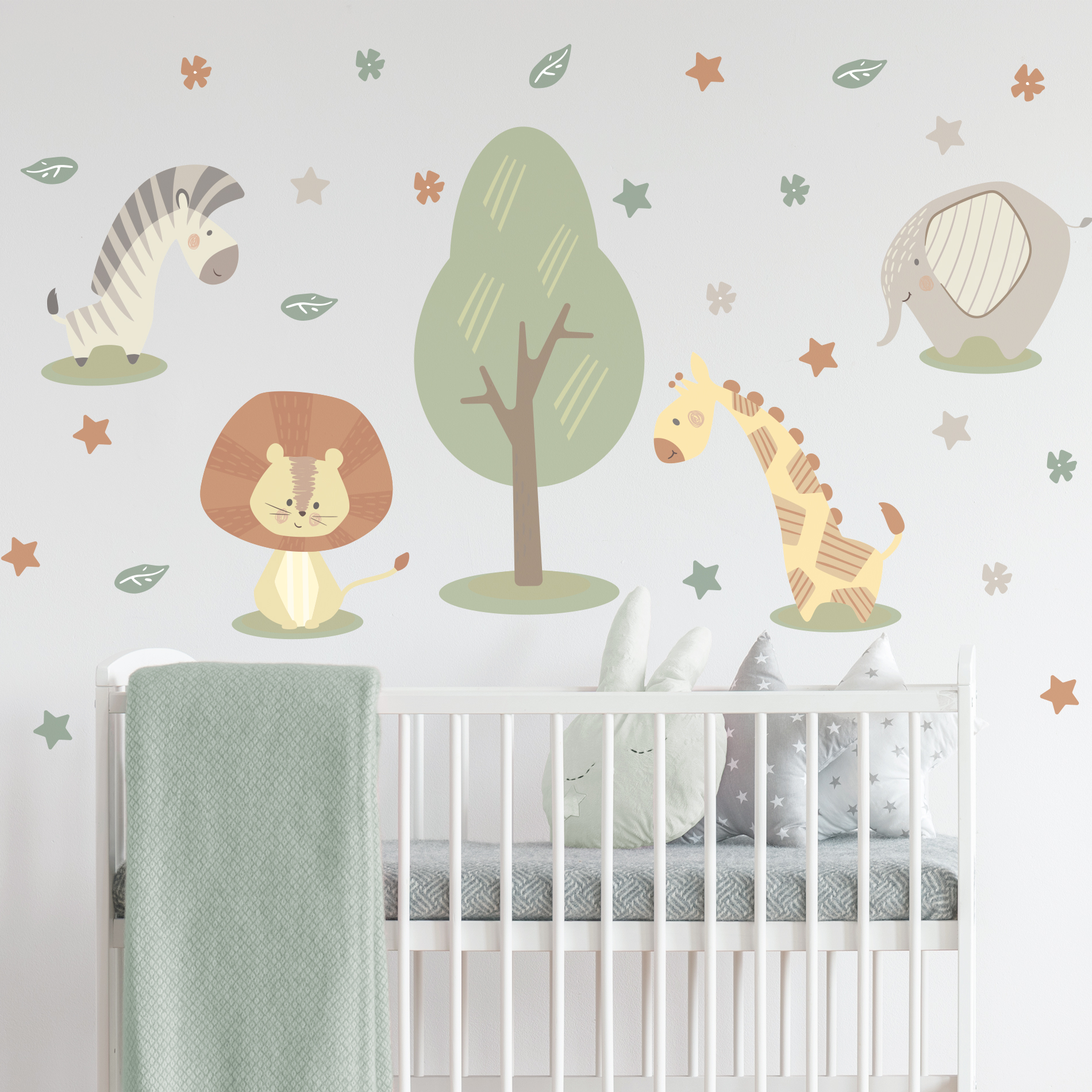 Decore quarto infantil com o Adesivo de Parede Safari Minimalista da Quartinhos e traga graça e alegria para a decoração!