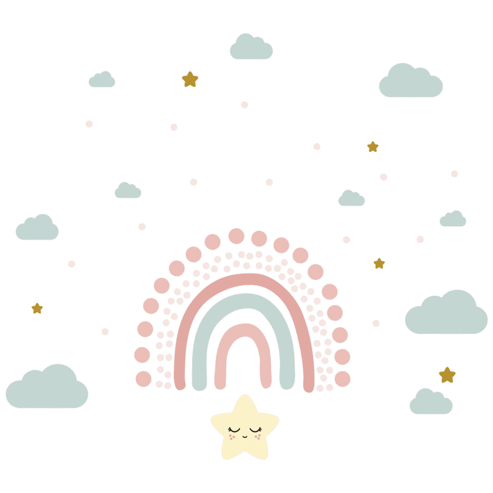 • Dimensões: Inclui um arco-íris de 95 × 97 cm, uma estrela de 30 × 30 cm e diversos adesivos menores, ideal para decorar o quarto das meninas.