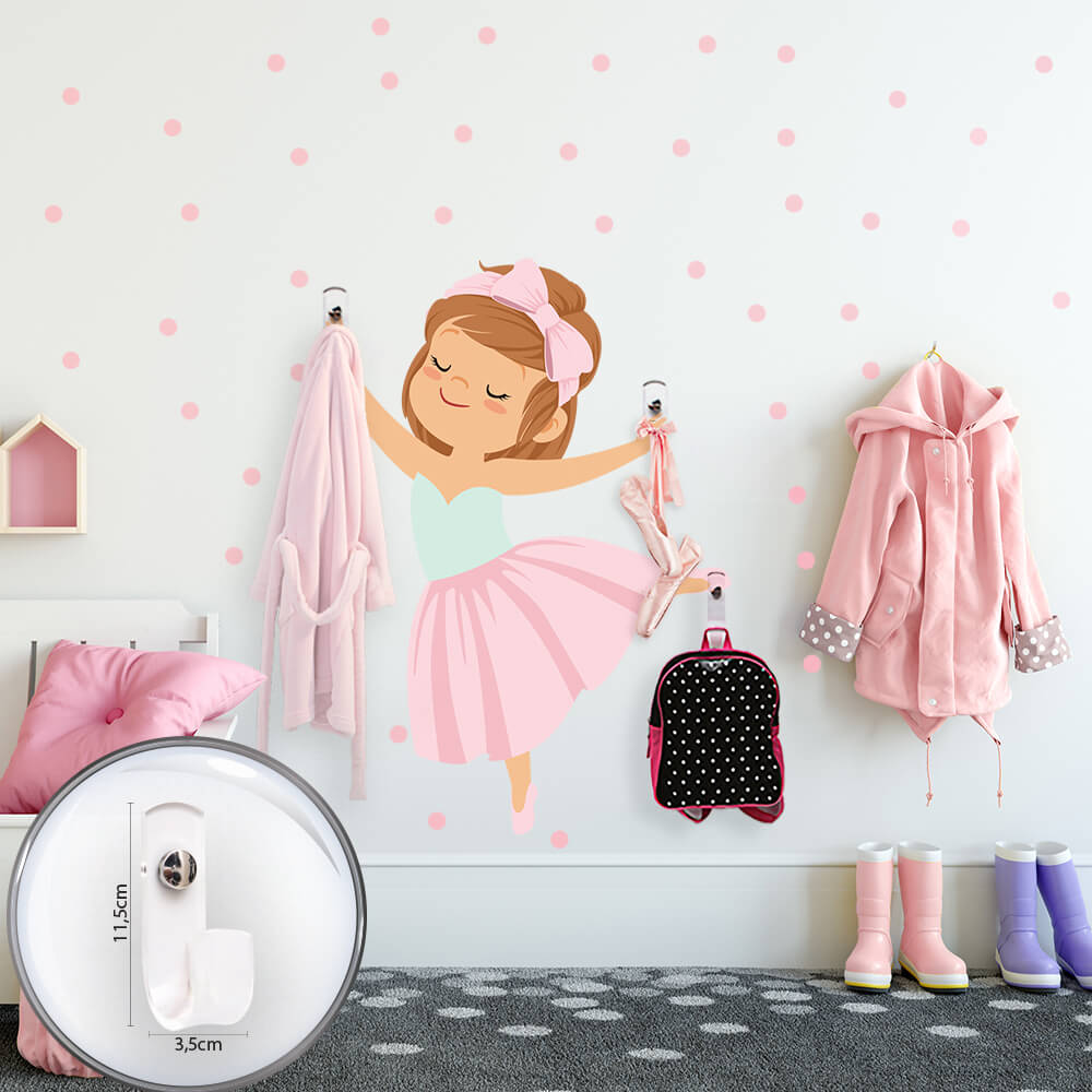 O adesivo de parede Menina Bailarina da Quartinhos é perfeito para decorar quartos infantis com charme e funcionalidade. Nossa loja oferece produtos de alta qualidade, com fácil aplicação e material não tóxico, garantindo segurança para seu ambiente. Além disso, o conjunto acompanha ganchos organizadores que ajudam a manter o espaço prático e organizado.