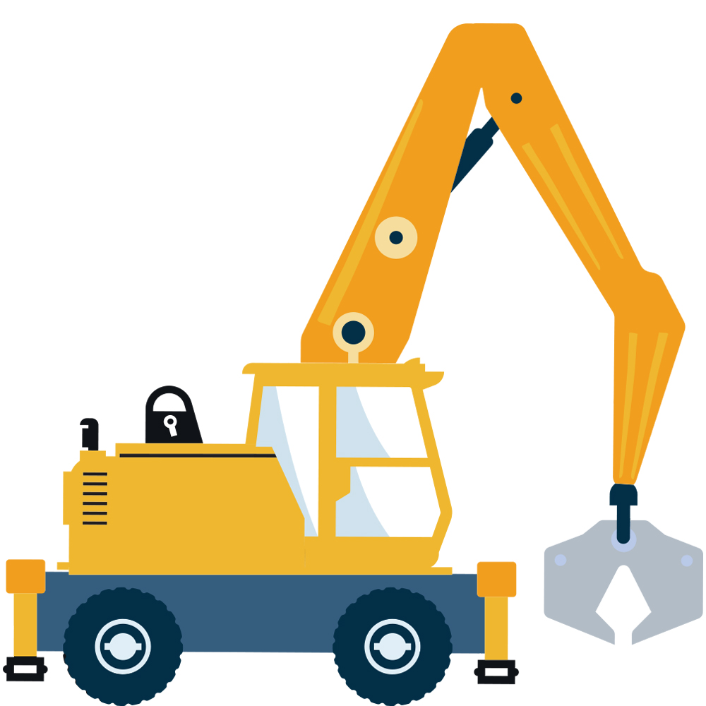 Imagem ilustrativa do adesivo de parede com guindaste amarelo mostrando medidas para aplicação e detalhes do produto.