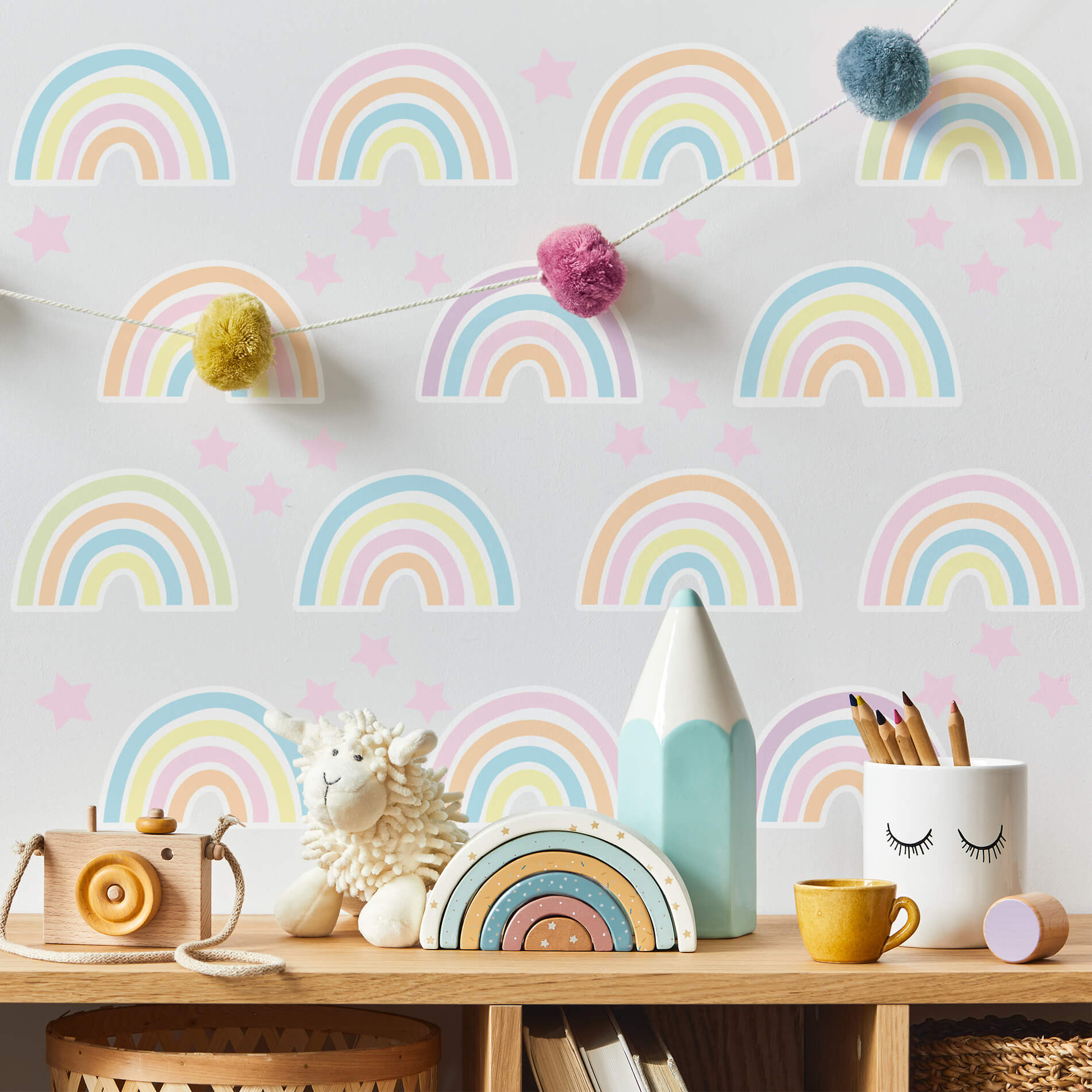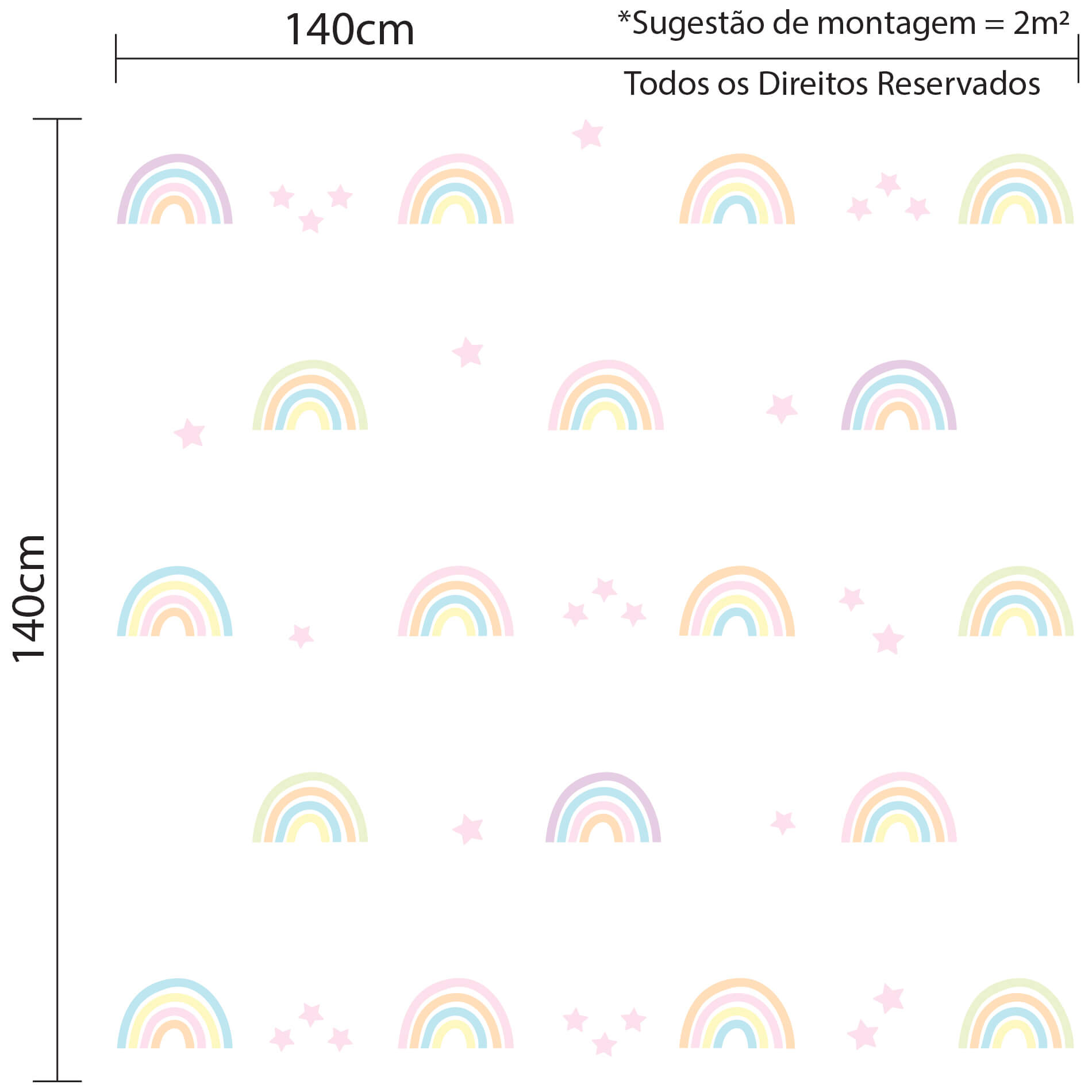 Adesivo Parede Menina Arco-Iris Estrelas Aquarela Cobre 3m²