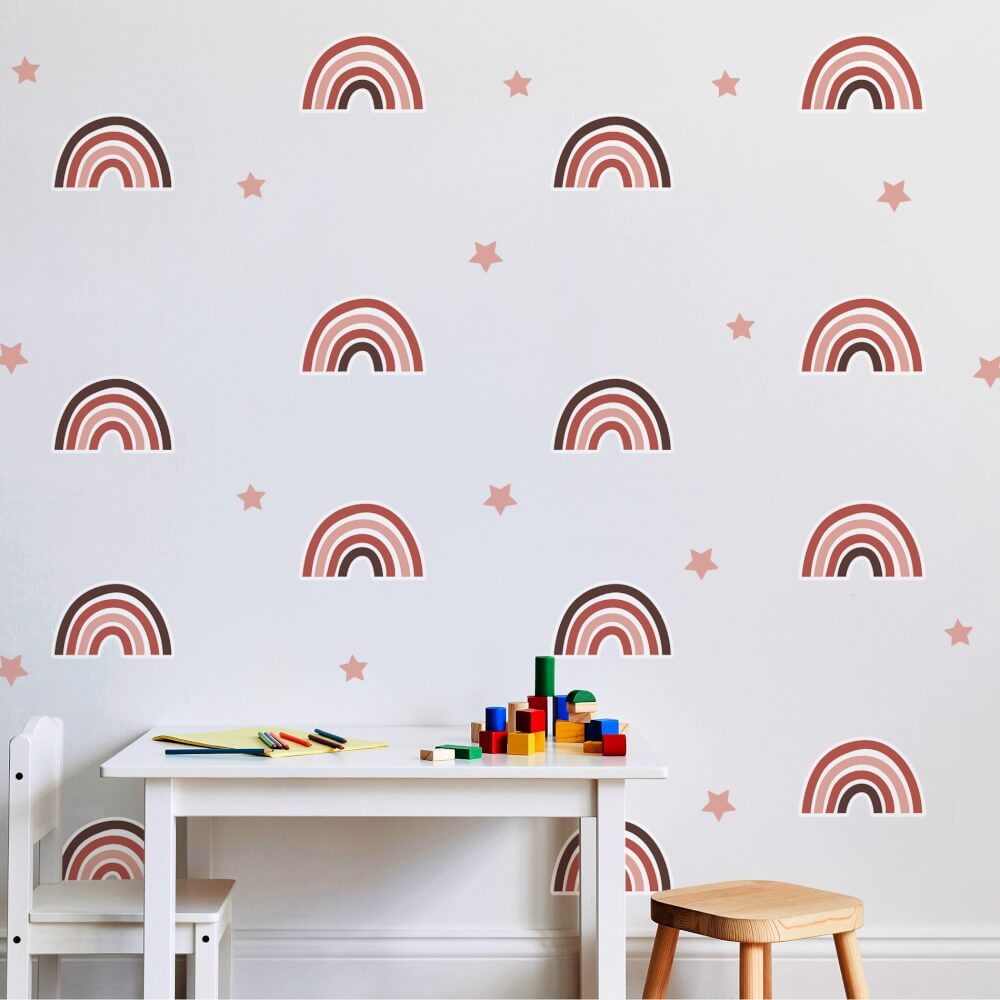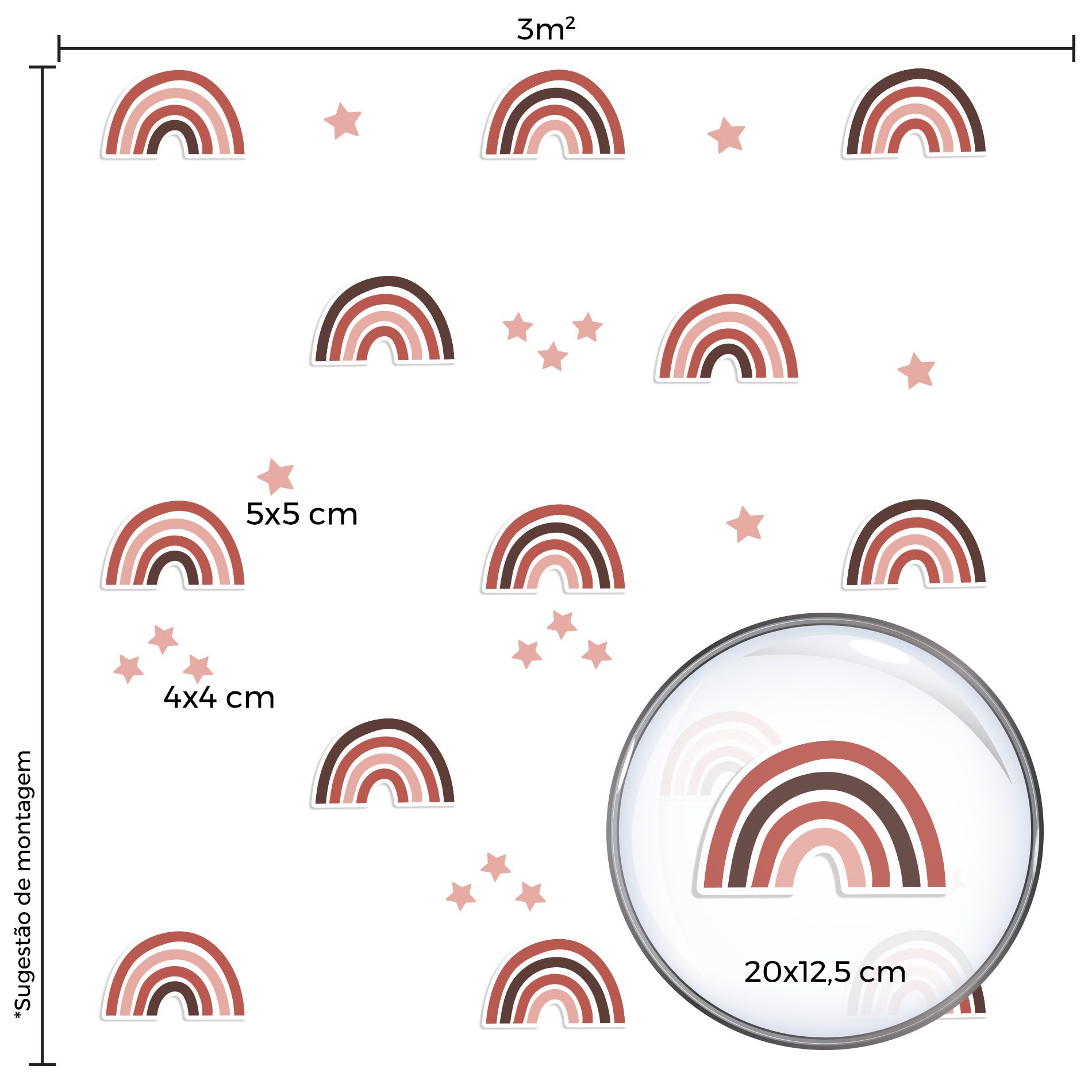 Adesivo de Parede Infantil Mini Arco Iris em tons terrosos 44un Cobre 3m²