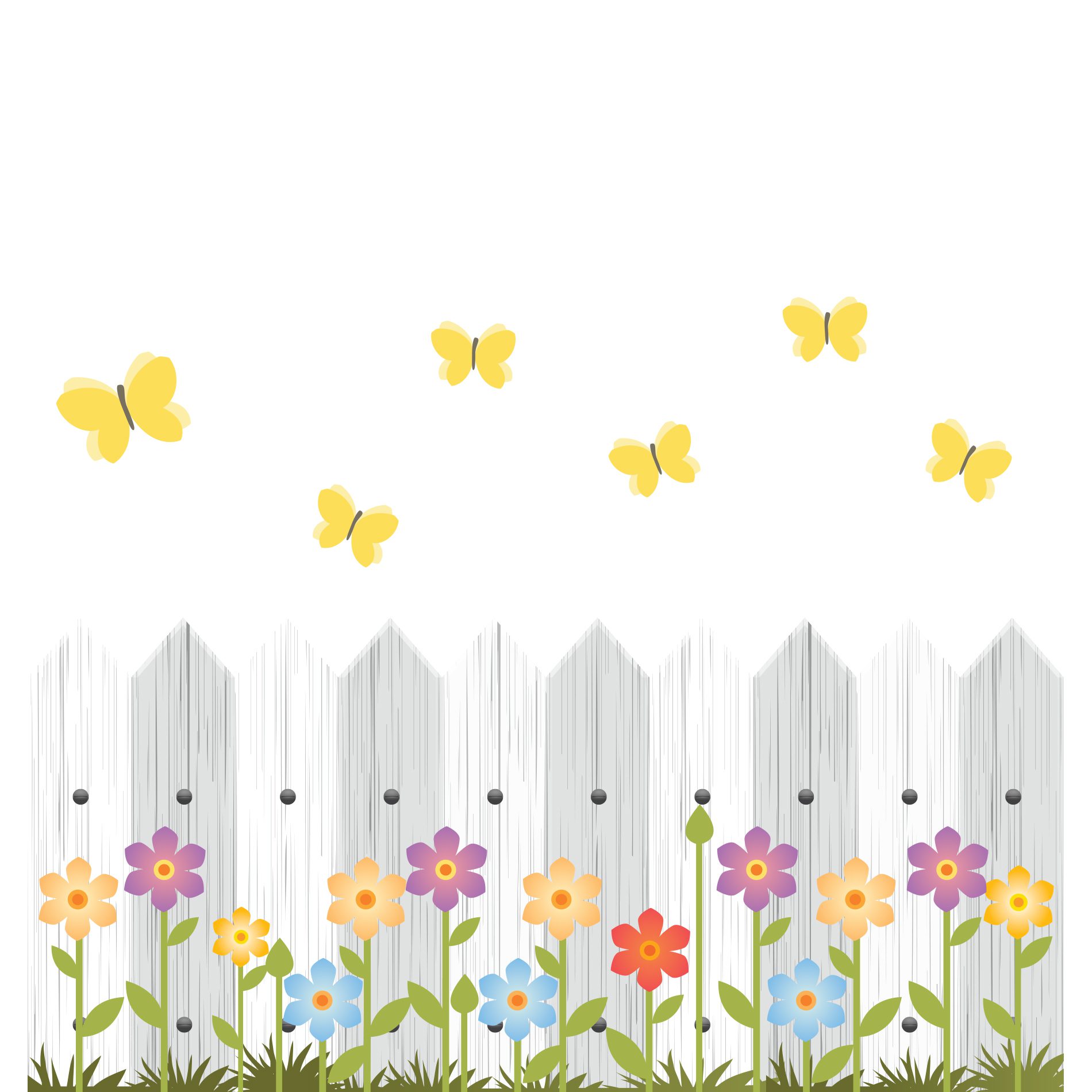 Adesivo de Parede Infantil Cerca de Madeira Branca e Flores