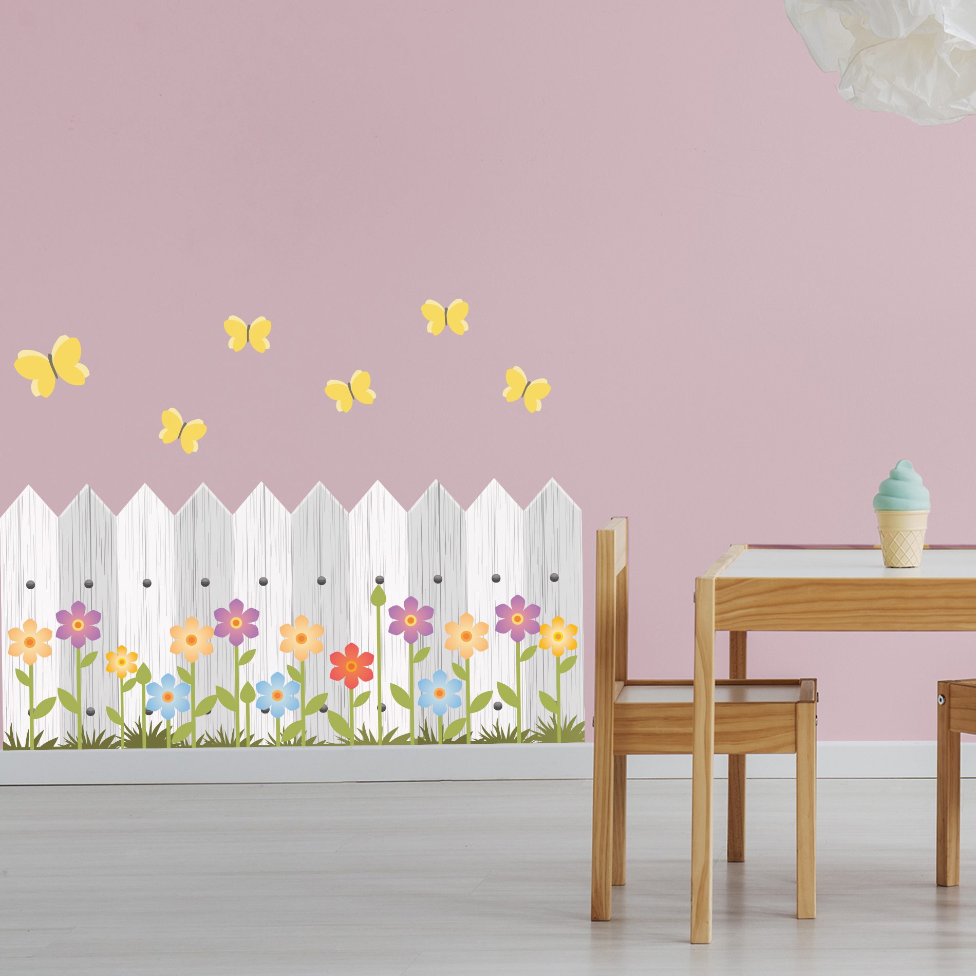 Este excelente Adesivo de Parede Infantil Cerca de Madeira e Flores é ideal para quartos e deixará os espaços ainda mais sofisticados. A cerquinha de madeira branca com flores alegres e borboletas traz um ar delicado e colorido ao quarto das meninas ou brinquedoteca. Este produto é o tipo de solução para as famílias que almejam transformar os espaços com rapidez e eficiência.