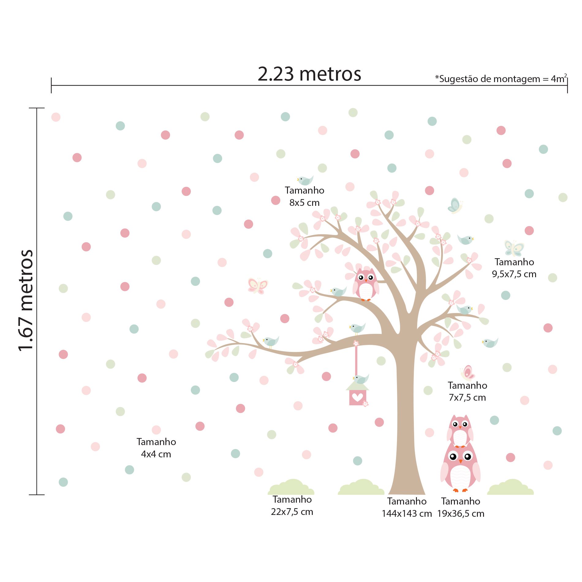Dimensões e Características do Adesivo de Parede Árvore Coruja Baby