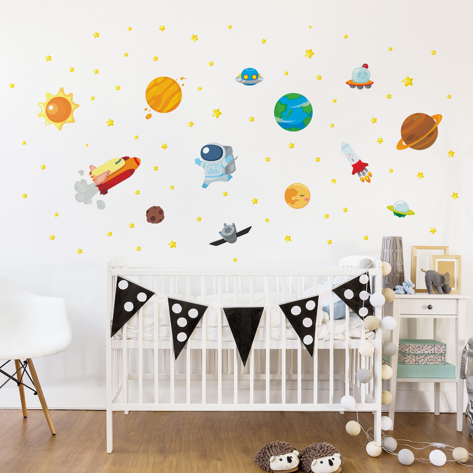 Com um design vibrante e colorido, o adesivo apresenta os planetas do sistema solar, incluindo a Terra, Marte, Júpiter e muitos outros, em uma representação cativante. Além disso, um corajoso astronauta está presente, inspirando a imaginação e a curiosidade das crianças. Seu filho se sentirá como um verdadeiro explorador espacial em seu próprio quarto!