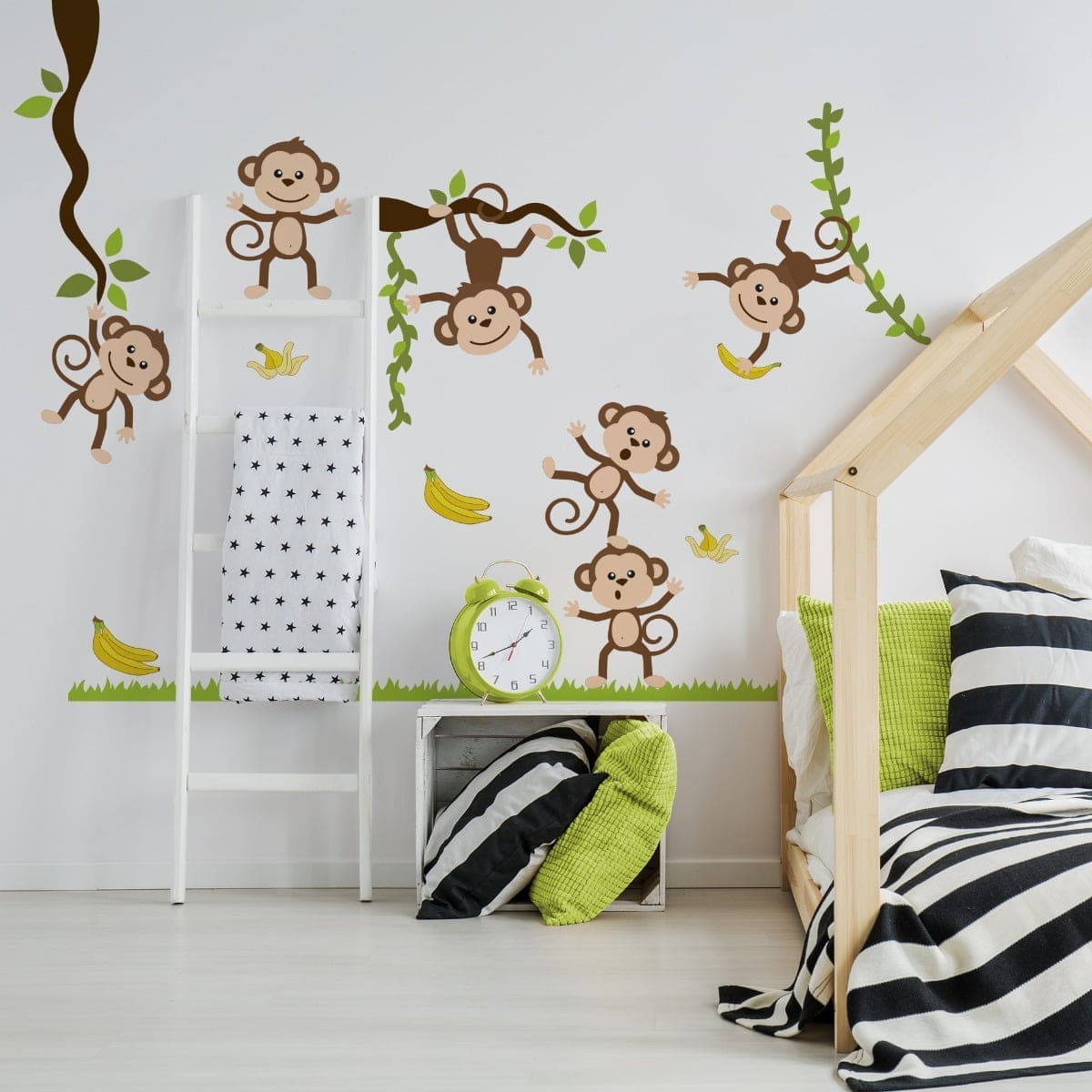Adesivo de Parede Quarto Infantil Macacos Amigos