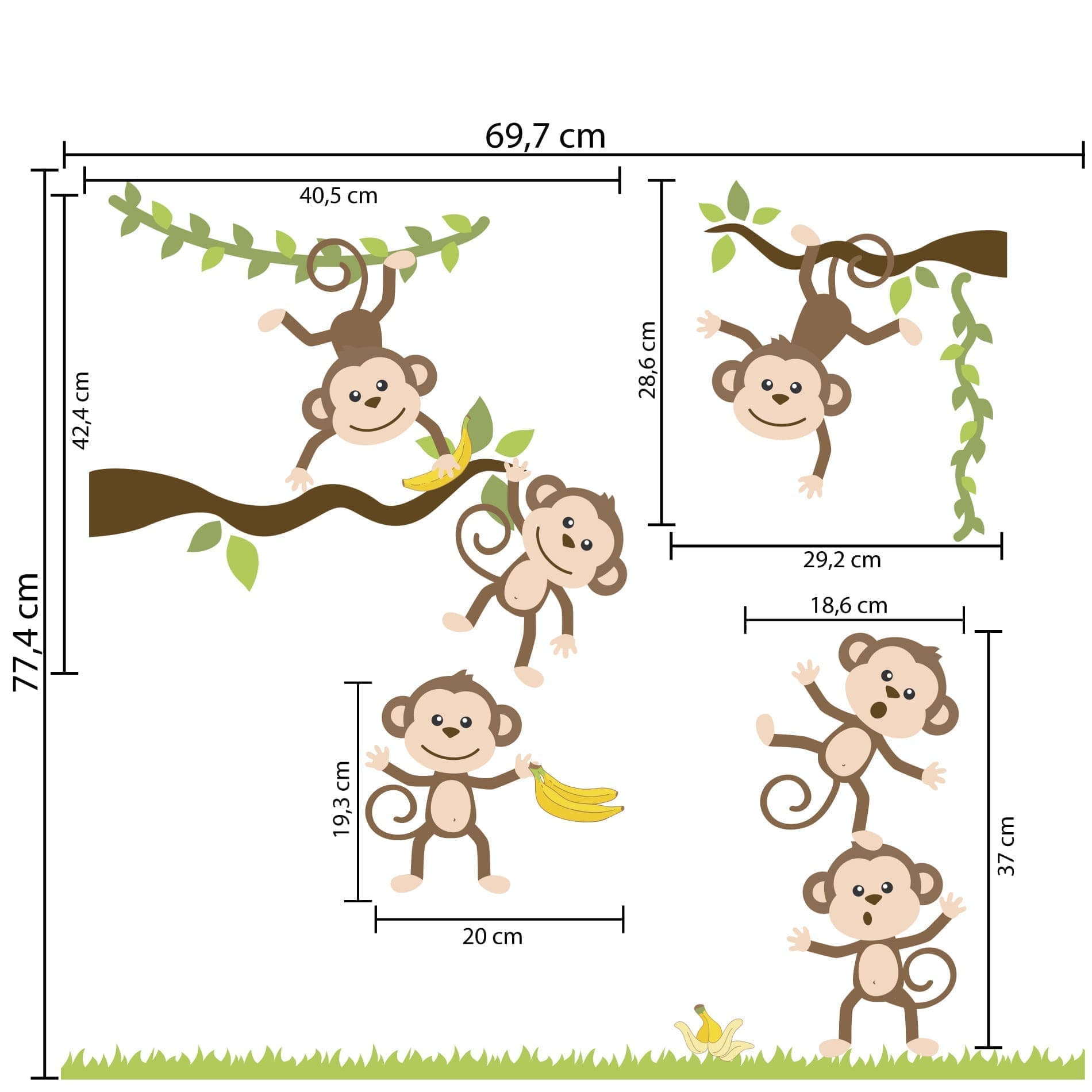 • Tipo de produto: Adesivo de parede infantil com o tema “Macacos Amigos”, ideal para decorar quartos e brinquedotecas.