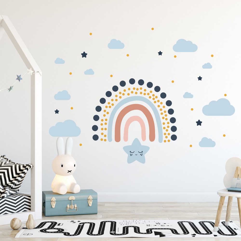 Tudo o que você precisa saber sobre Adesivo de Parede Quarto Menino Arco-íris Azul Céu Estrelado