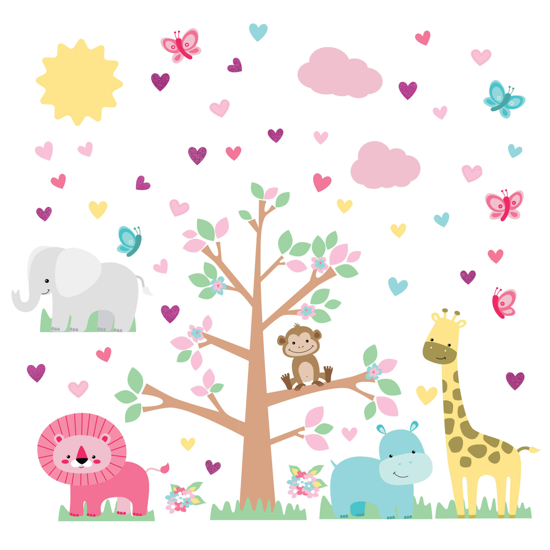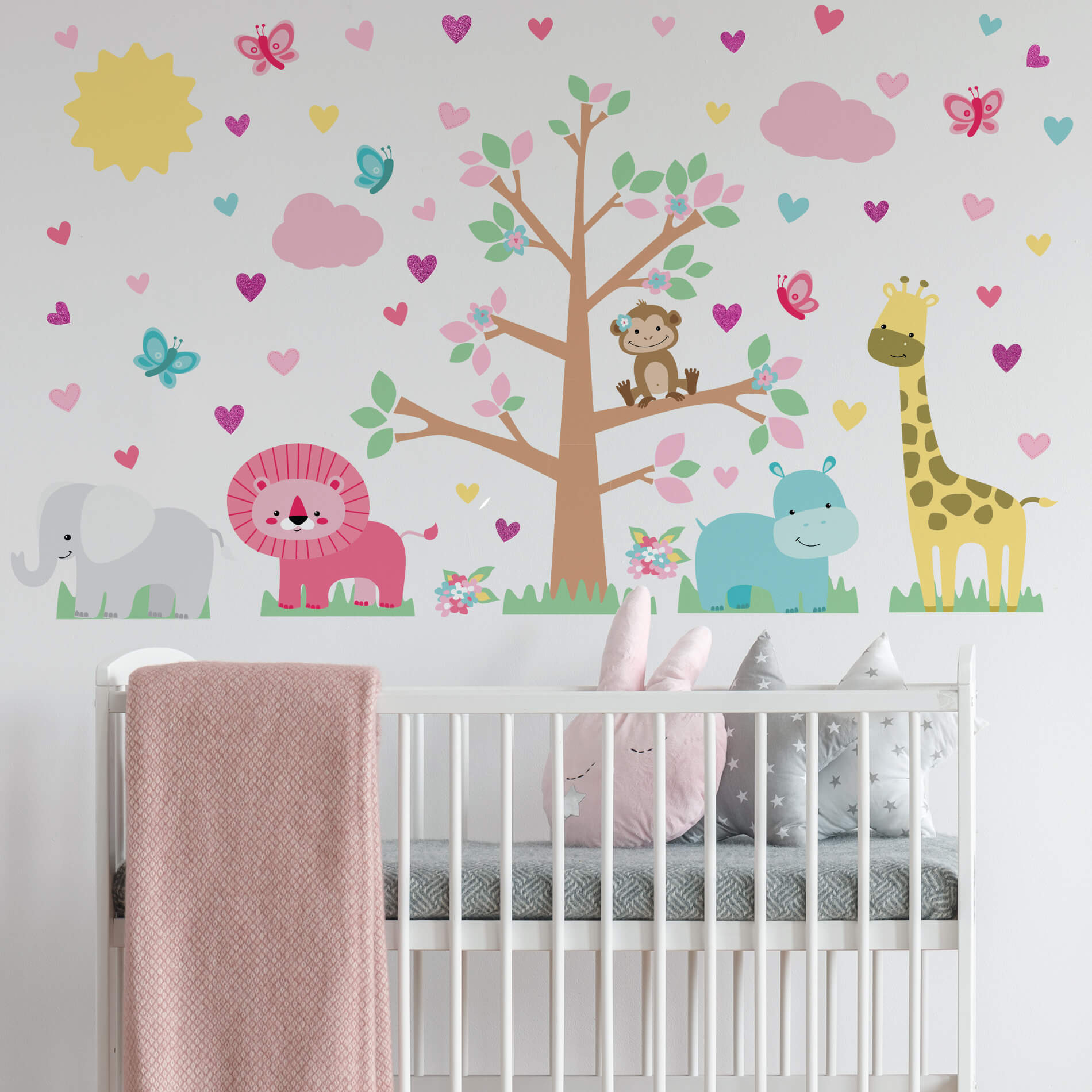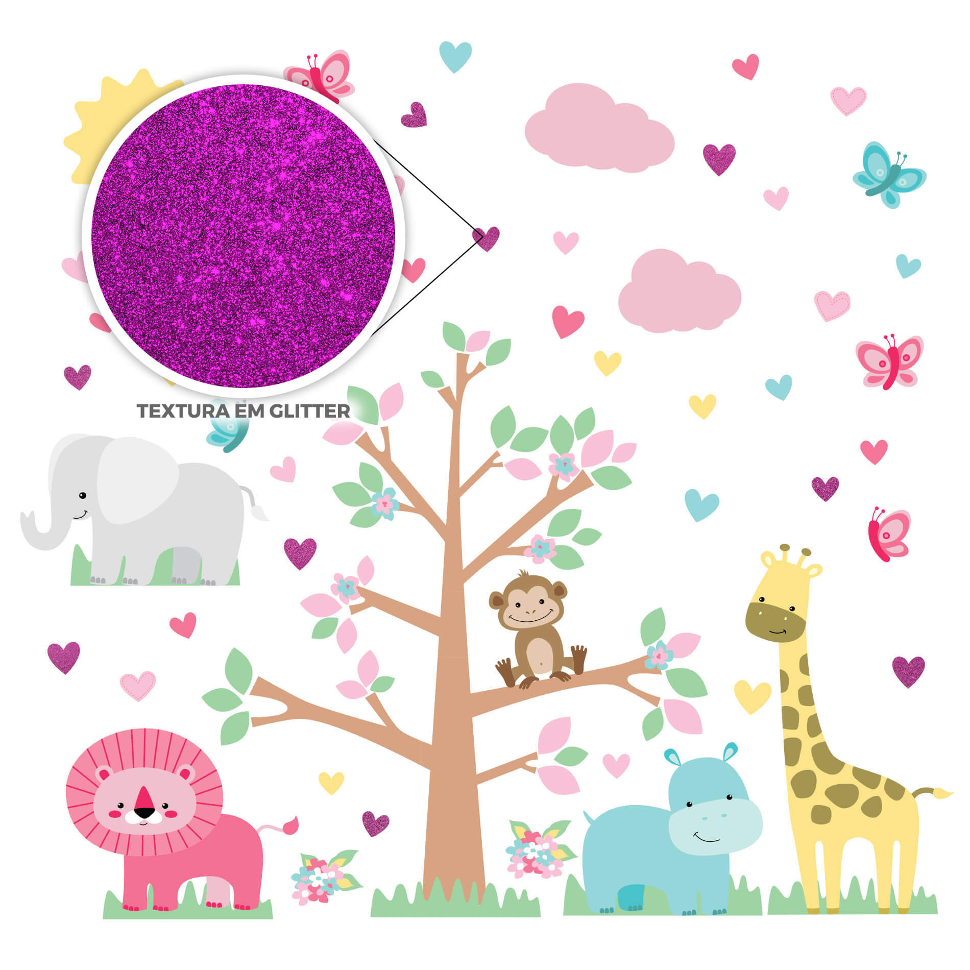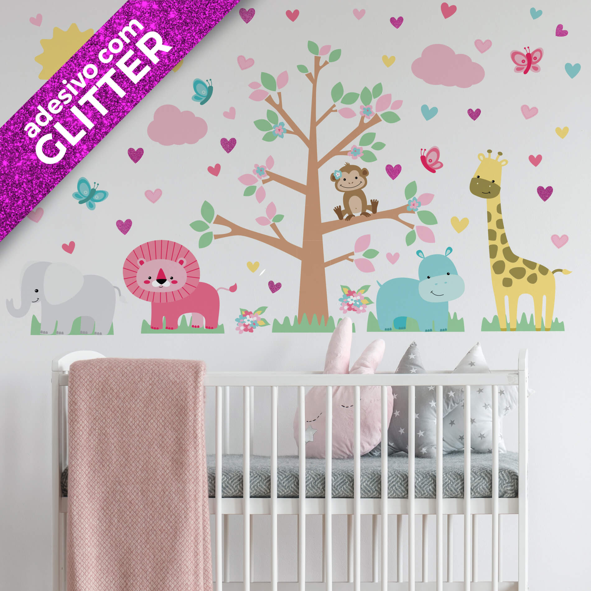 Adesivo de Parede Infantil Safari com Glitter Quarto Meninas