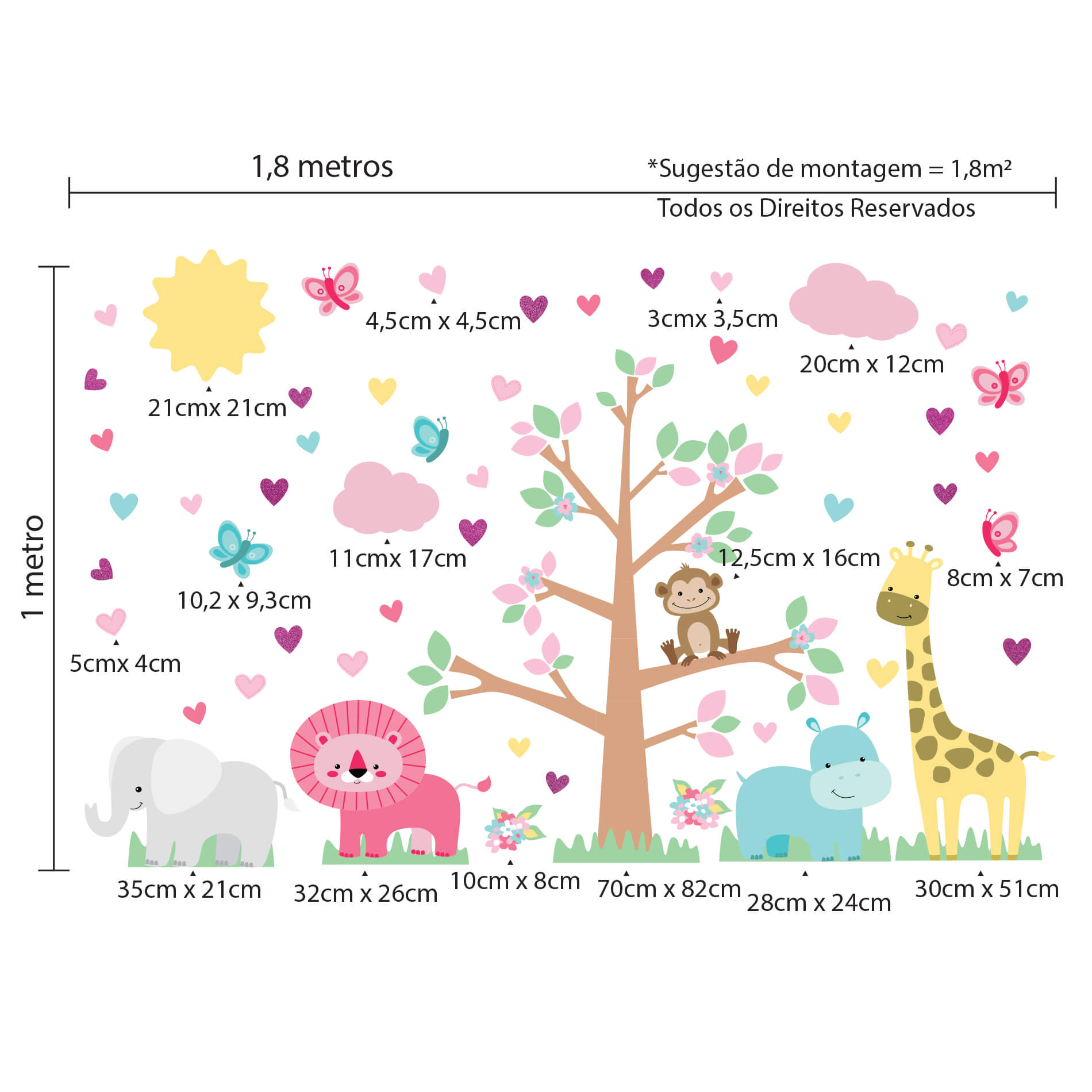 Dimensões do Adesivo de Parede Infantil Safari com Glitter Quarto de Meninas